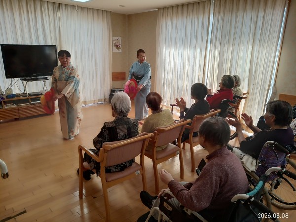 日本舞踊では美しい所作と華やかな雰囲気に皆様じっと見入っておられました。