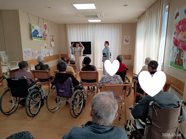 曲の途中でご利用者様のところへラウンドに回られると「あら、綺麗ね」「素敵だよ」と皆様笑顔で喜ばれておりました♥