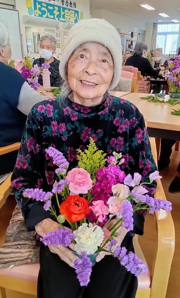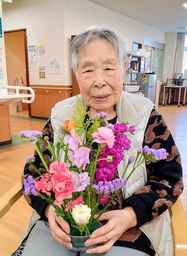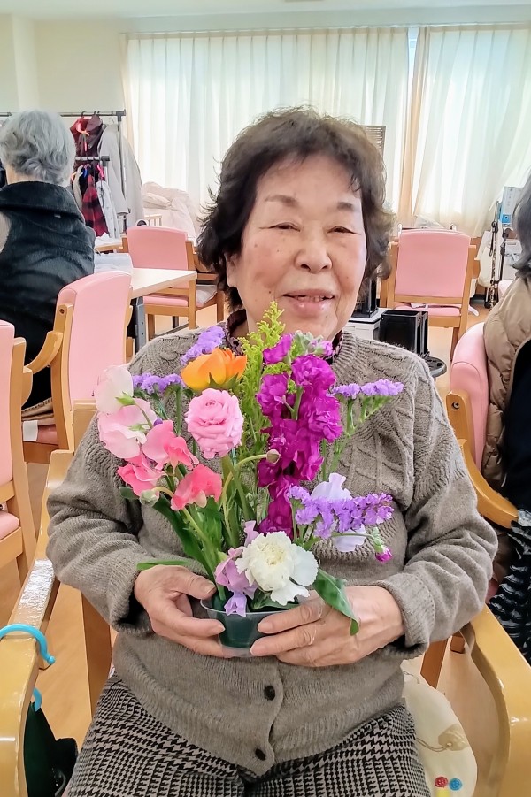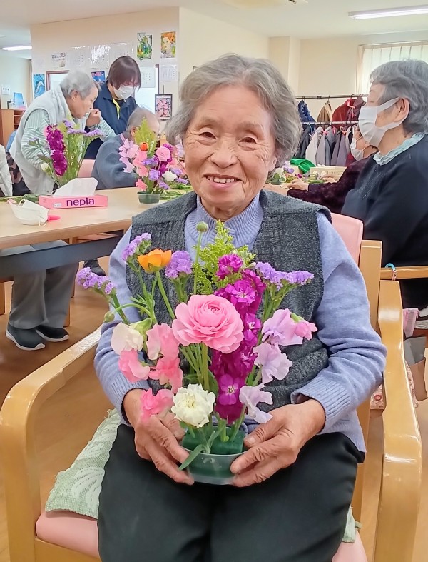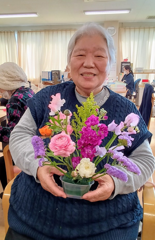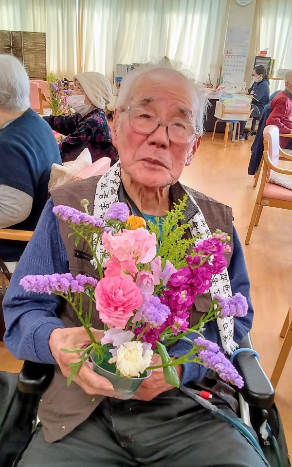 デイサービスセンター遊・志木上宗岡 春のお花でフラワーアレンジメント(*´ω`)