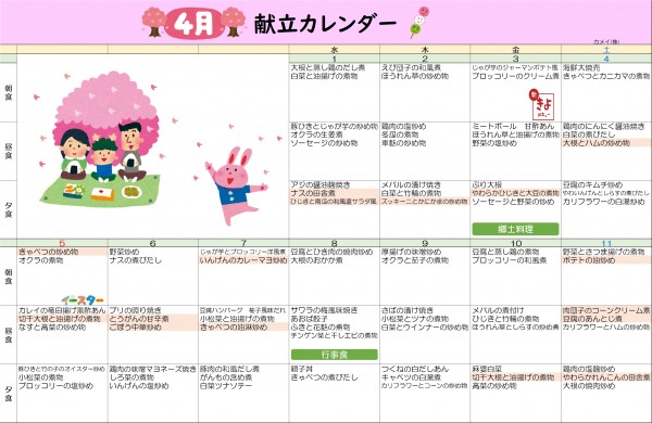さて、そんなこんなで4月の献立表が届きましたのでご紹介いたします!