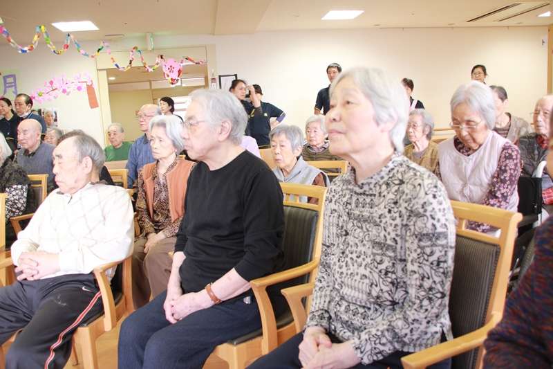 今年になり初めての、ALSOKあんしんヨガです。本日の先生は、太田先生です。西東京の皆様は、12月以来2か月ぶりのALSOKあんしんヨガでした。本日のご利用者様の参加人数は、約60名と職員約20名合計約80名が参加され、5階リビングに集合し心と体を落ち着かせゆったりした気持ちになりました。