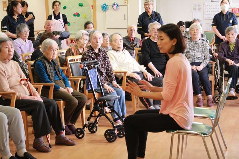 本日の先生は太田先生です。わかりやすく、よく通る声で会場を一つに盛り上げてくださいました。今回はDSのご利用者様も特定のフロアで参加されました。4事業所全てが一堂に会し、複合施設ならではの盛り上がです。DSのご利用者間にとり5階フロアに行くことは、おそらく初めての経験だったことと思います。「ここは何階ですか?」と、興味深々のご様子でした。
