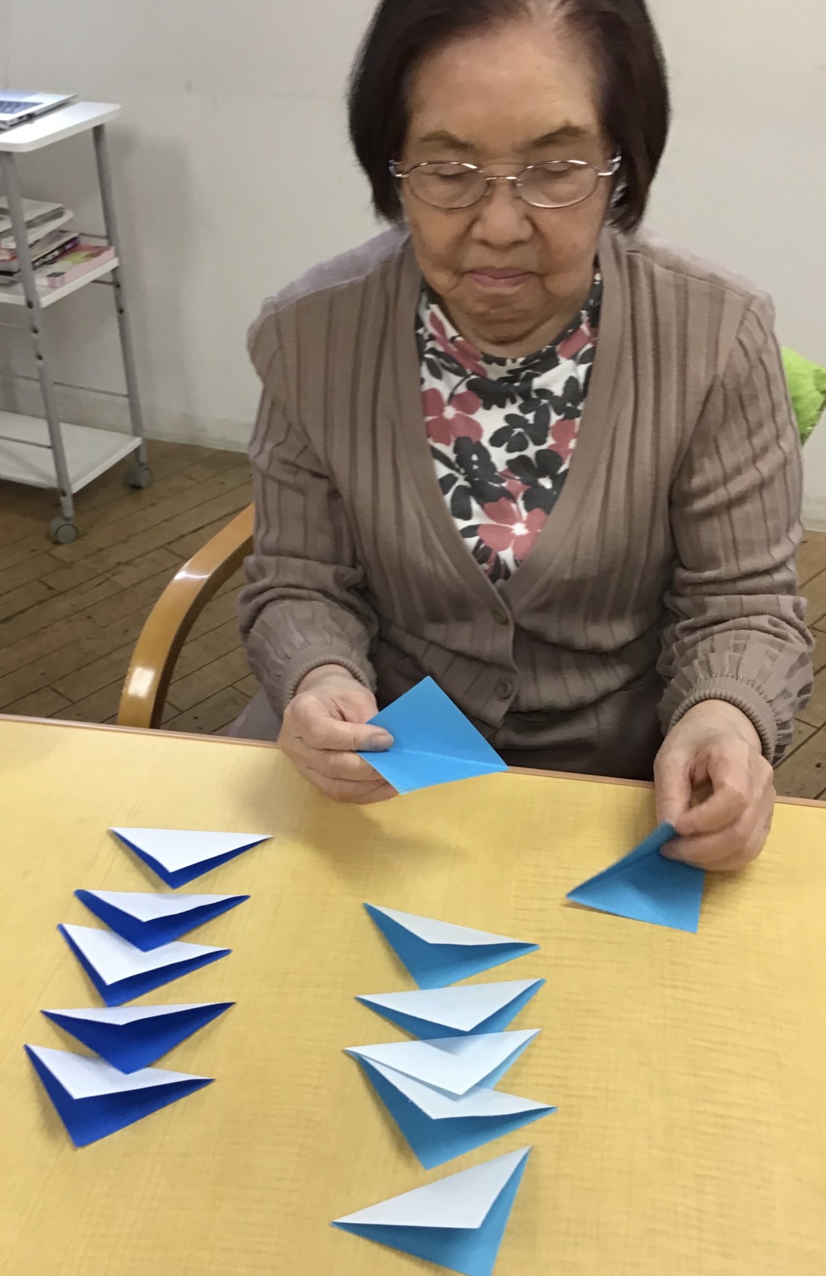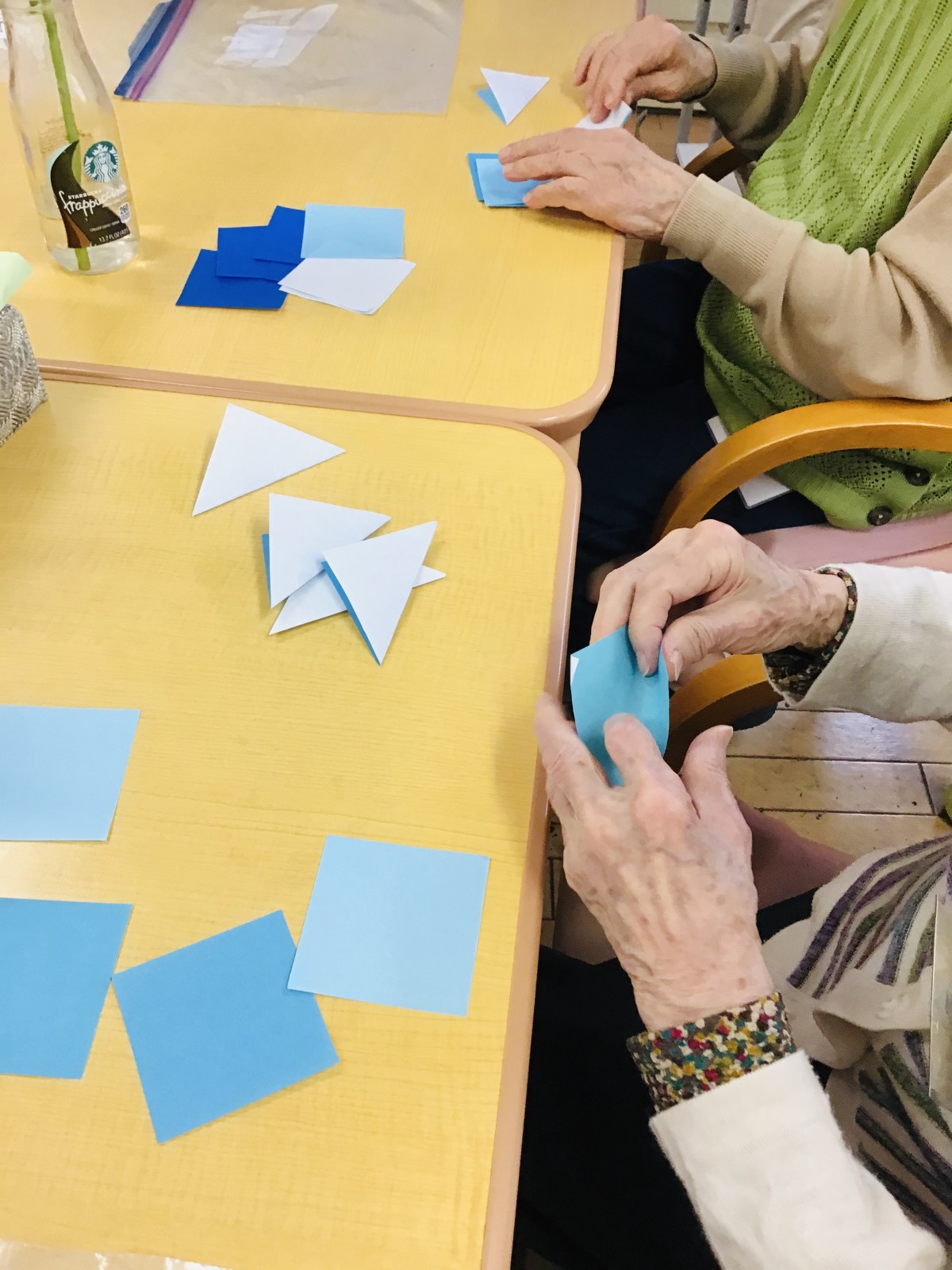 選んだ色紙を三角形に折っていきましょう(*^-^*)