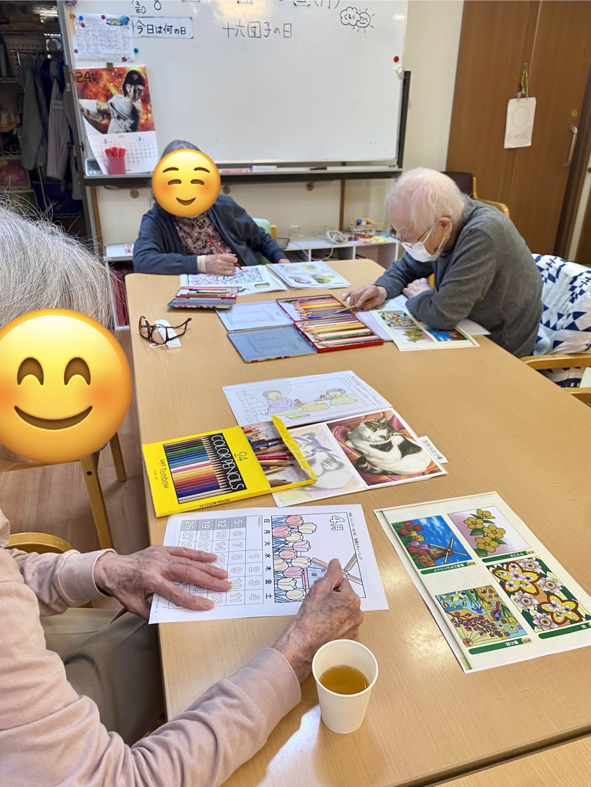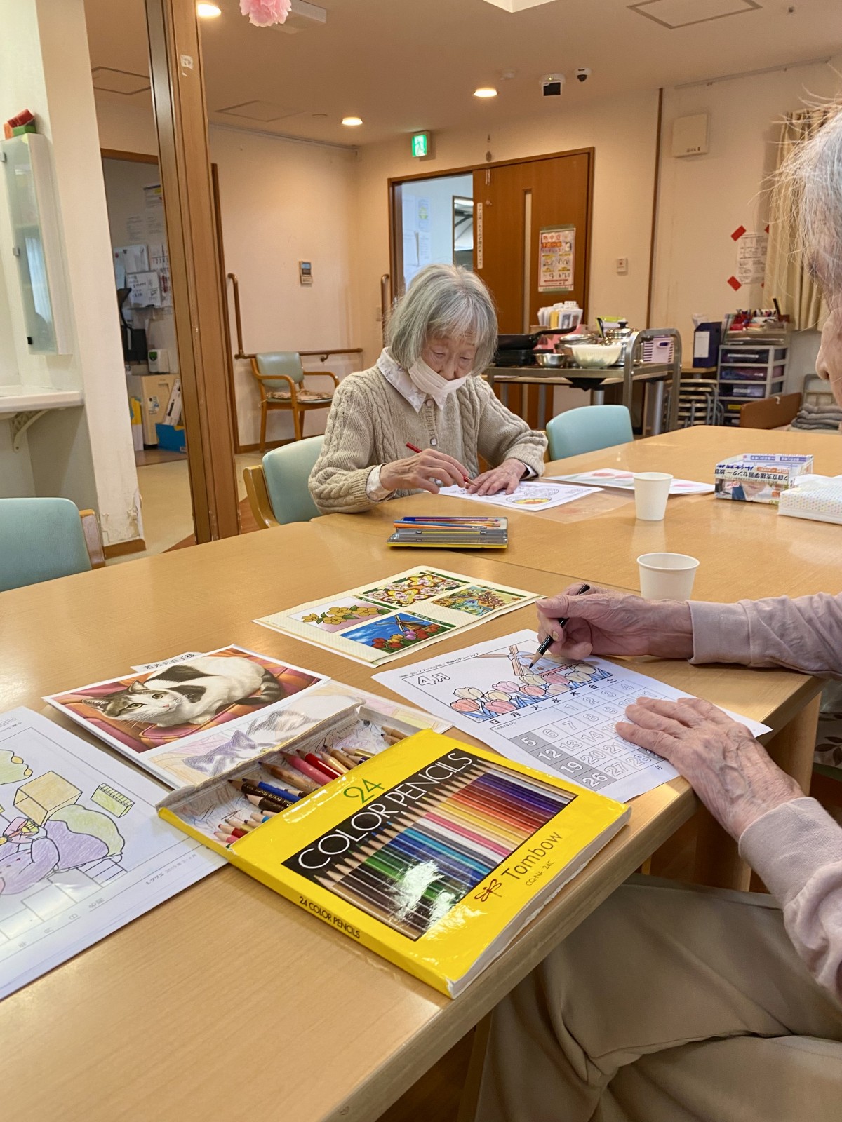 昼食前のひと時を、みなさん思い思いに色鉛筆を走らせていました(>_<)