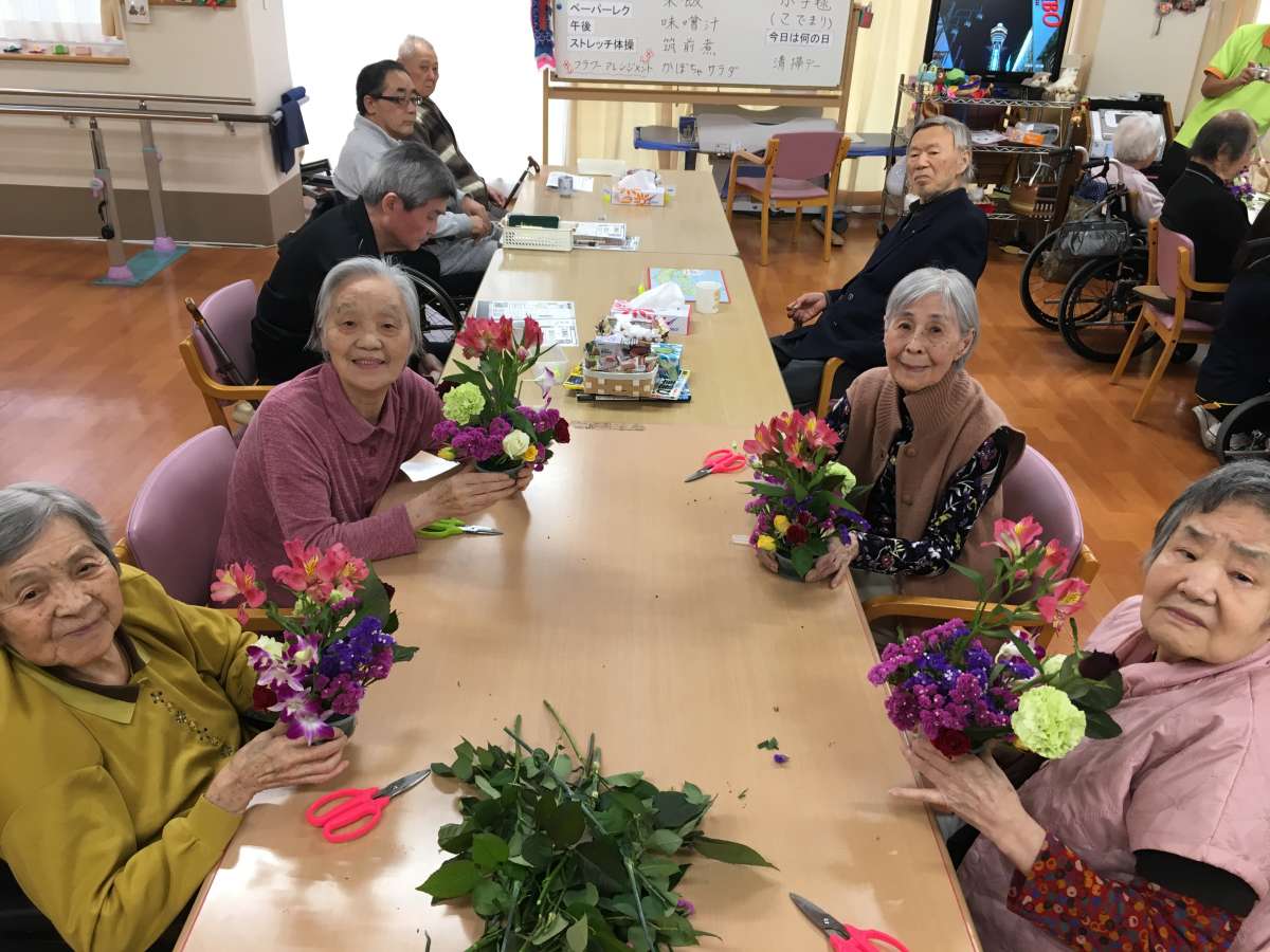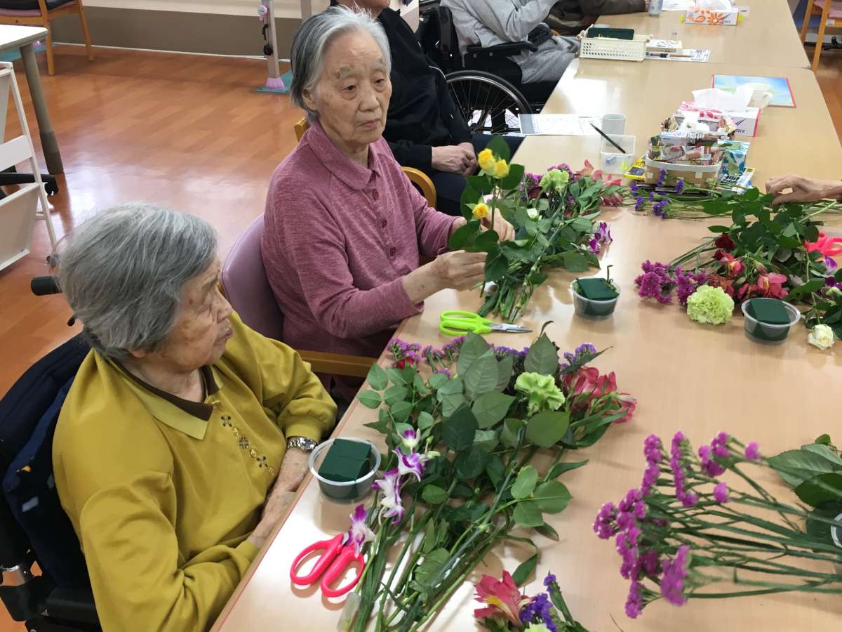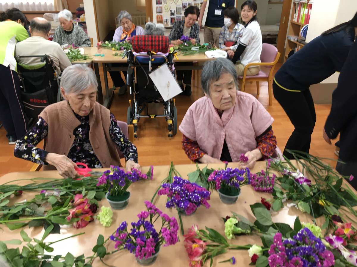 フラワーアレンジメント教室は、1階デイサービス遊・府中さんで開催するのに一緒に参加させて頂いています。