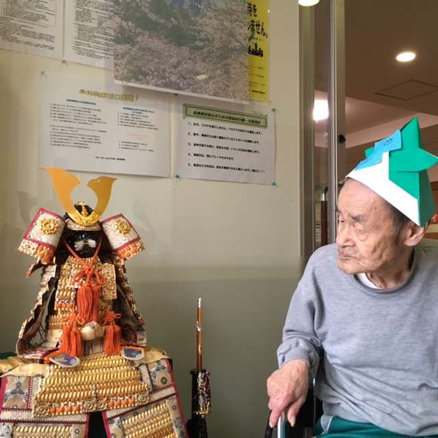 今月は先月に続き、レクで兜と鯉のぼりを作りました。