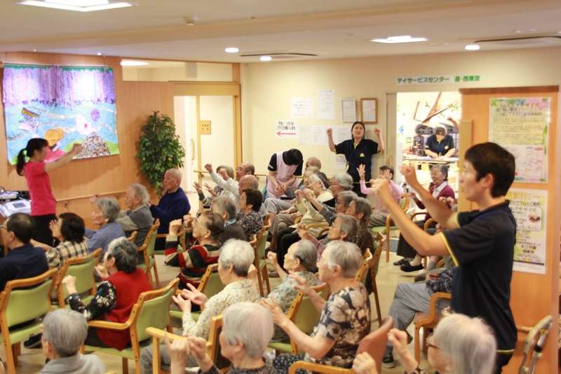今日は、グループホーム みんなの家 西東京です。今月も皆様が楽しみにしているNÕAエクササイズの日がやって来ました。西東京の皆様NÕAエクササイズ本当に楽しみで、ニコニコ笑顔で参加しています。毎回ほぼ同じような動作の繰り返しですが、その繰り返しが、脳を刺激し記憶の中に、数の数え方はこうだったとか、間違えても笑ってごまかすとか、皆様、脳と脚と表情筋まで鍛えておられます。今月のエクササイズは、ズンドコ節に合わせて体を動かしていました。ここ3か月位、本日は新たに北国の春の曲に乗せて新しい動きを学びました。本日は、皆様方のリクエストにお応えして、北国の春とズンドコ節を続けて、体を動かされて居られました。高橋先生の時は、男性のご利用者様が、張り切って、一生懸命に、大きな声で参加していただいております。本日の参加人数は、すこや家から12名グループホーム・17名 ショートステイ・8名 デイサービスから19名 合計56名のご利用者様が参加していただきました。クーラーをつけていても、熱気で汗をかかれて居られました。次回のNÕAエクササイズは7月9日火曜日です。そして予告8月3日土曜日・納涼祭にNÕAエクササイズを皆様と楽しみたいと言う事で、今年も行います。宜しくお願いいたします。一緒にエクササイズしましょう ❣