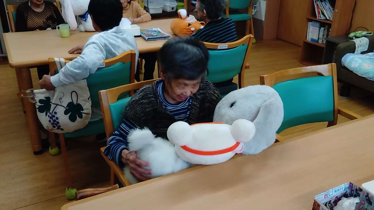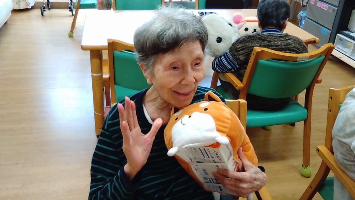 女性のご利用者様それぞれお気に入りのぬいぐるみを抱っこされ子供のように可愛がっています!