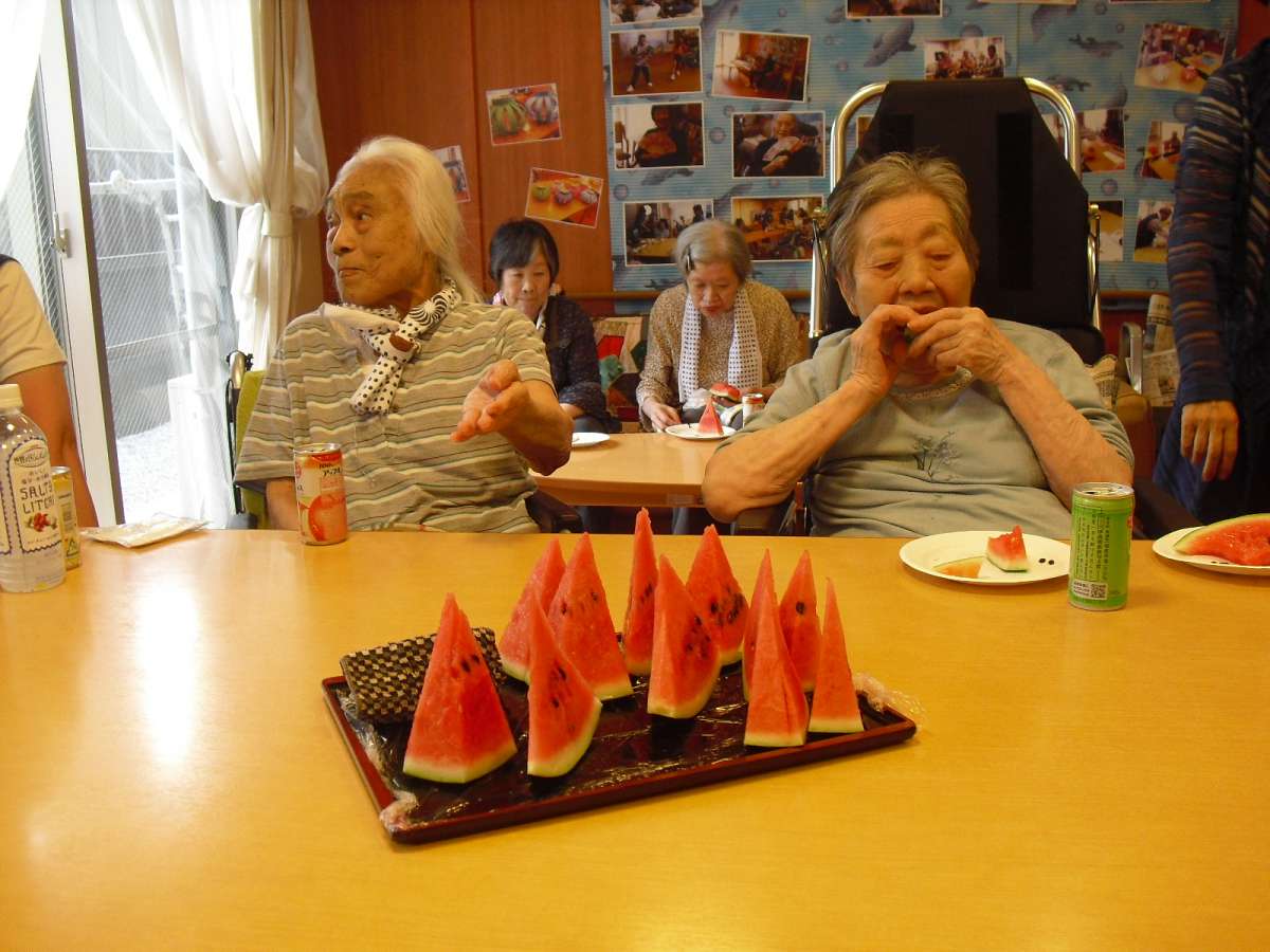 | 皆様こんにちは、 グループホーム みんなの家・岩槻本町です。 8月19日(日)に岩槻祭りがありました(*^。^*) 暑い夏ですが屋台や歌声などが聞こえてくるとウズウズして外に出たくなりますね♪ ホーム内では家族会もおこない、皆様とスイカ割りも楽しまれスタッフも頑張ってスイカを叩いてました! その後は、美味しく頂きました♡ |