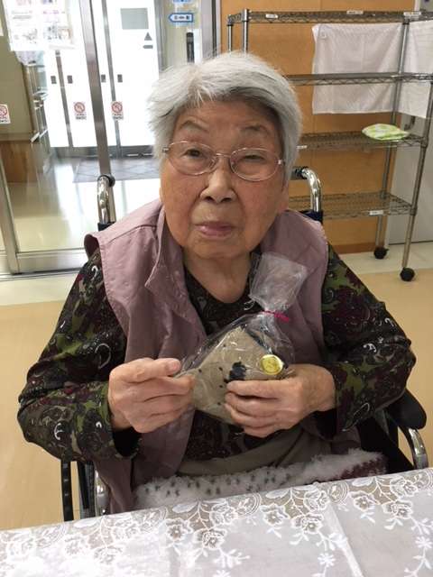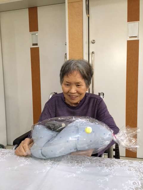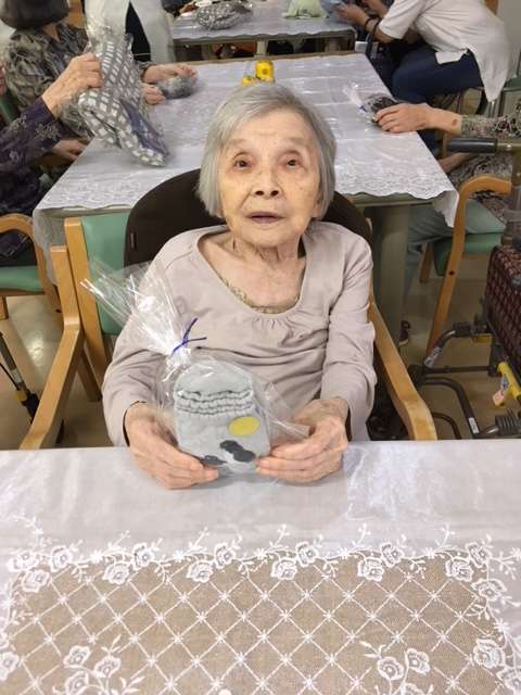 皆様でお祝いして敬老の日ということで職員からご利用者様へプレゼントをお渡し