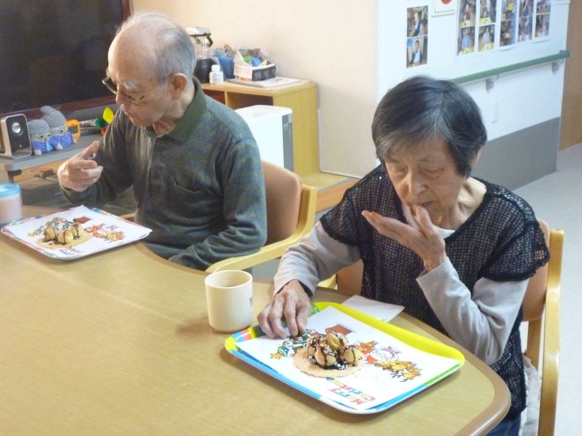 シュークリームをツリーに見立てチョコシロップを掛け星のスプレーで飾り、召し上がりました(*^^*)