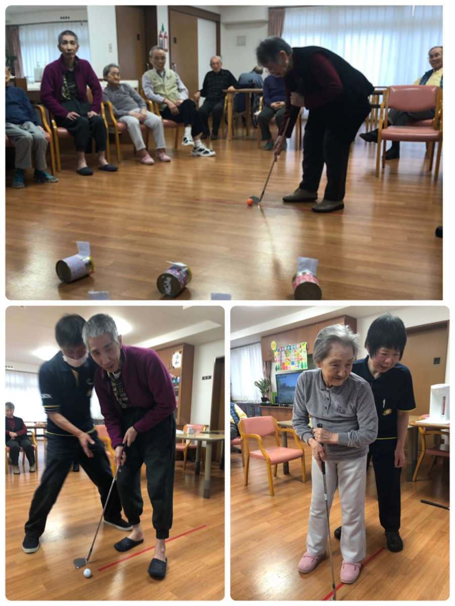 こんにちは。みんなの家・大宮内野本郷のコダマです(๑˃̵ᴗ˂̵) 今日は、一階と二階の入居者様合同の『寒さを吹き飛ばすぞ!パターゴルフ大会♬』を開催しました♡ 『ゴルフは昔良く行ったもんだよ』と他者様にパターの持ち方も教えてくださるダンディなI様☆素敵です。『初めてだけど挑戦してみる!』と真剣な表情の女性入居者様も(^。^) 沢山の笑顔が見られて、賑やかな午後のお時間を過ごせました♬また是非やりましょうね