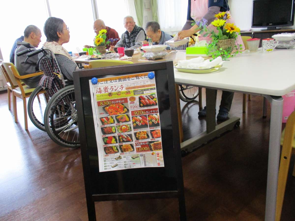 こんにちは~みんなの家・大宮内野本郷です(^ー^) 12月9日は【お寿司レク 】の日です♪1週間前からメニューを見て1人1人食べたいものを選んで、この日を待っていました♪ 選んでる時は、みなさんかなり悩まれて 「○さん何頼んだの?」 「これも美味しそうだな~」 「ご飯大盛りで♪」 などなど楽しそうでしたo(^o^)o 今日もテーブルの上に、お寿司が並ぶと 「お~」 「美味しそうだな~」 「美味しい~♪」 と、あちこちから会話が(´ω`) みなさん大満足してくれて嬉しいです(^ω^)