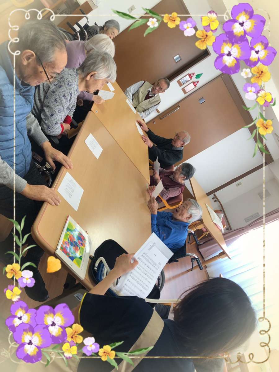 こんにちは。みんなの家・大宮内野本郷です(๑˃̵ᴗ˂̵) 本日二階フロアでは、N職員のピアニカ伴奏による『合唱♬』を行いました。 皆さまお馴染みの、故郷・高校三年生・365歩のマーチなどなど、盛り上がりましたよ〜(^。^) 『あー!楽しかった!』 『懐かしかったわ♬』 『喉が乾いたけど、今日のおやつ何?』など会話も弾まれ☆賑やかな二階フロアのご様子でした(๑˃̵ᴗ˂̵)