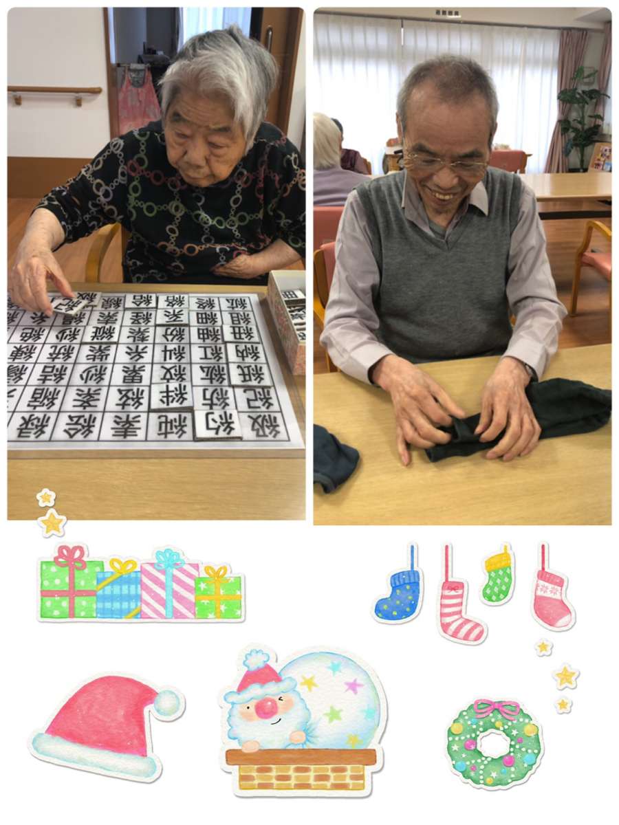 二階フロアでは、洗濯物を畳んでくださる方、漢字パズルに集中される方、そして塗り絵がお好きな入居者様が多くいらっしゃいます♡