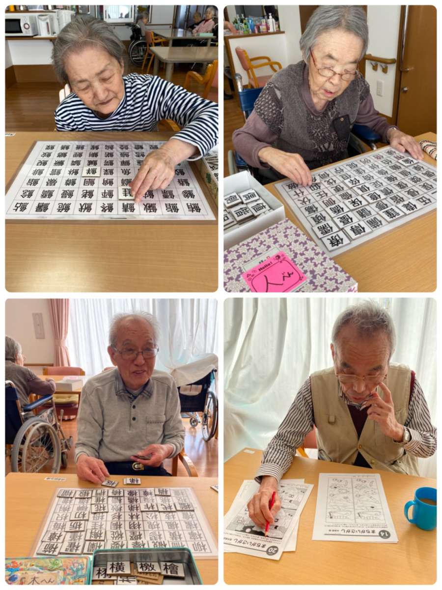 こんにちは。みんなの家・大宮内野本郷のコダマです(^。^)本年もどうぞ宜しくお願い致します。 花の丘公園そば。さいたま市西口。 宮原駅西口よりバス6分&徒歩4分のところにある施設です。 ◉漢字パズルや間違い探しに集中される方 ◉メモ用紙を作ったり、おしぼりを丸めたりと、スタッフのお手伝いをしてくださる方 などなど♡今日も笑顔溢れる二階のご様子でした(^o^) 今年もご家族様にご様子が分かりやすく伝わるよう、沢山のお写真を発信していきたいと思います!(^^)!