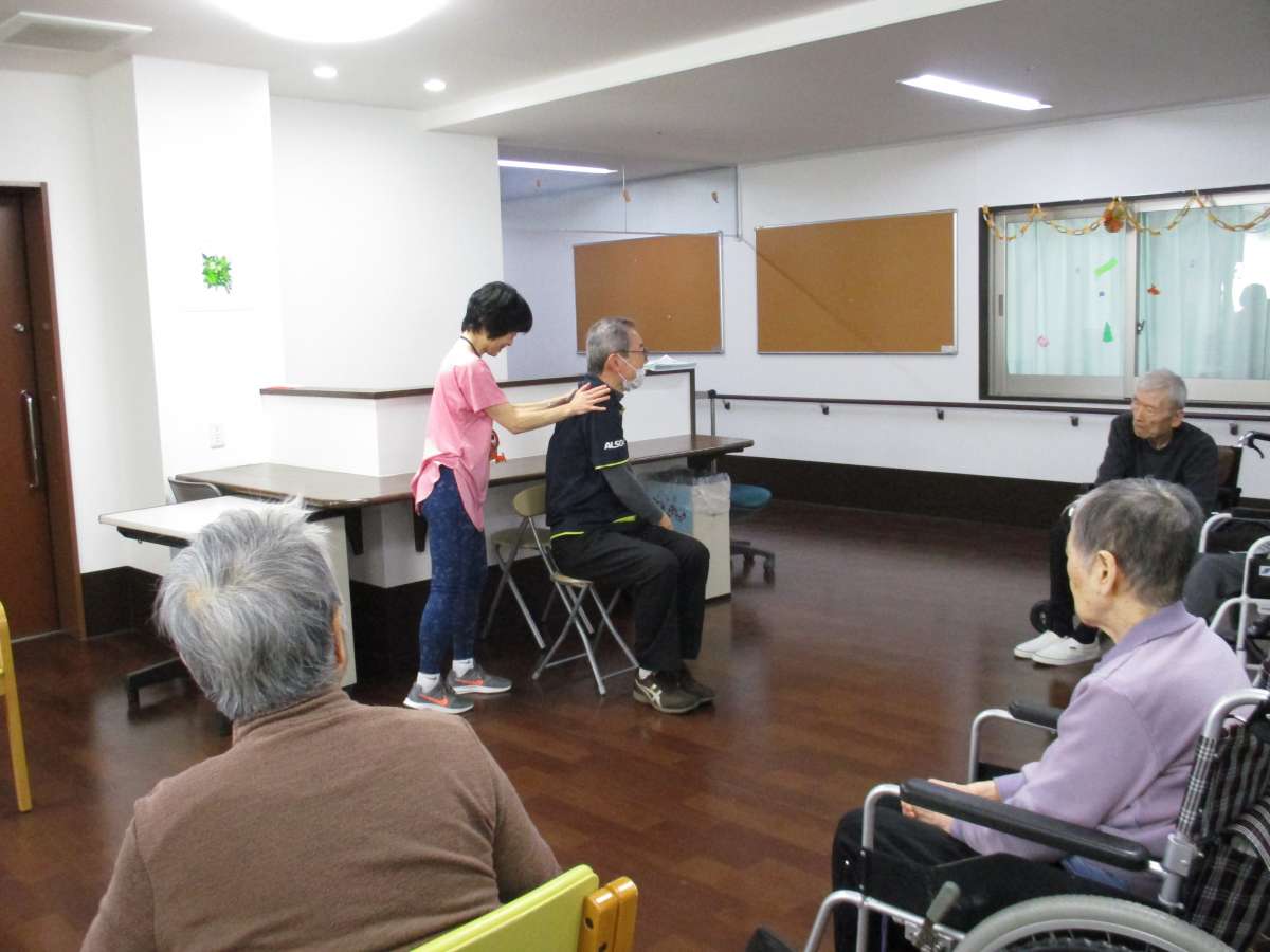 いきいきリズム体操の講師の先生を招いて入居者様と一緒に体操を行いました(*´艸`*)