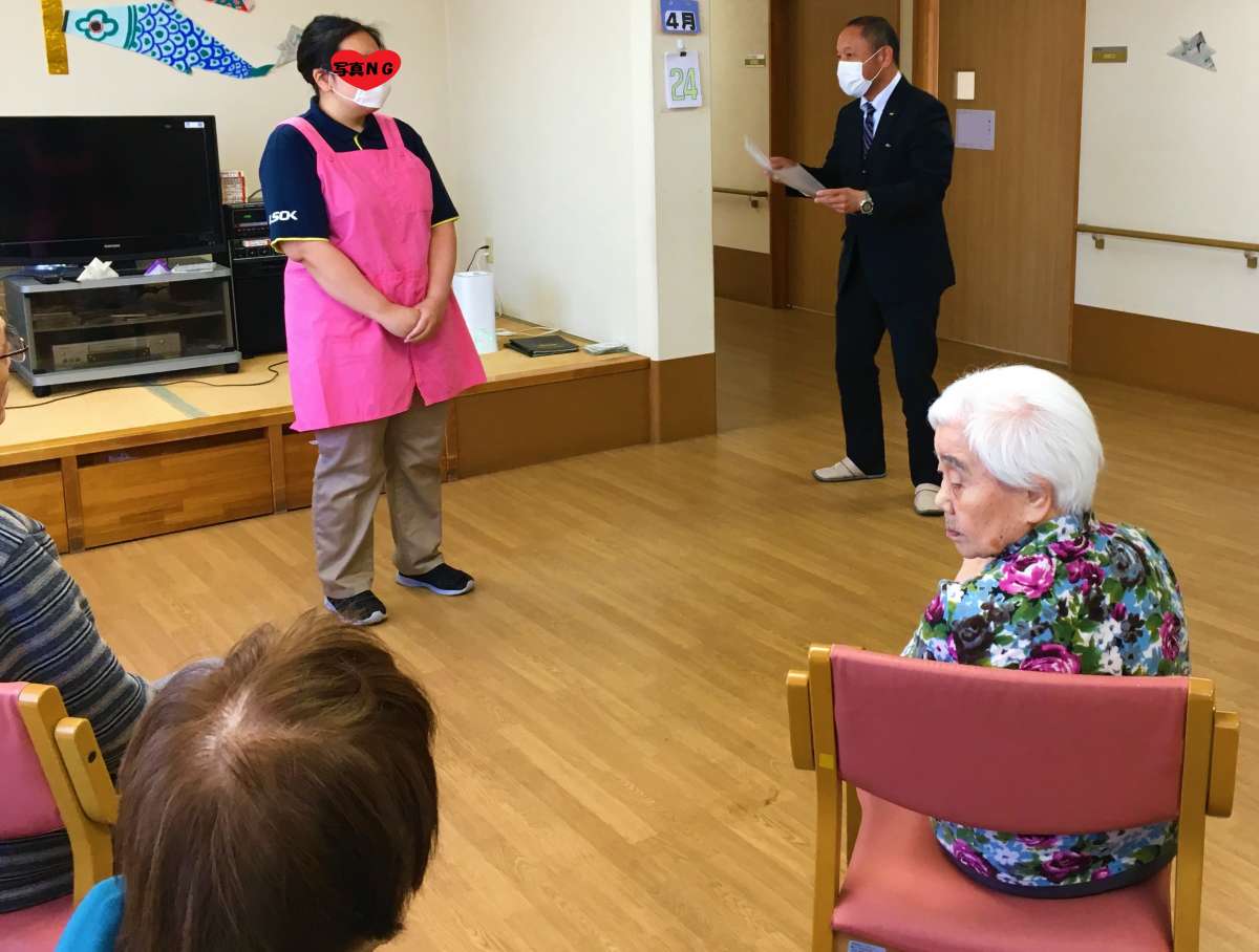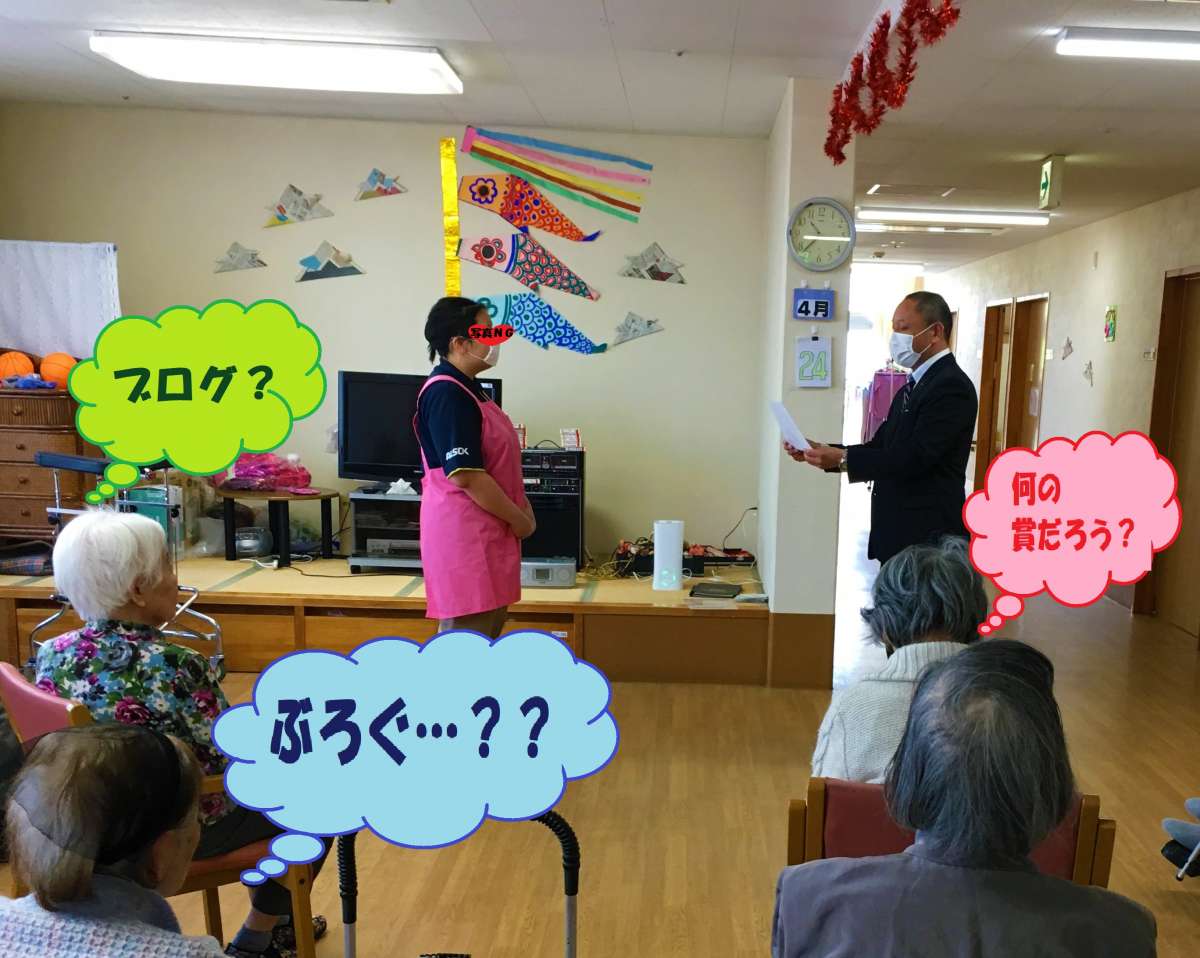 嬉しい読者賞授与式ではありますが、ピンと来ていない入居者様が多いようでした(*´Д`)