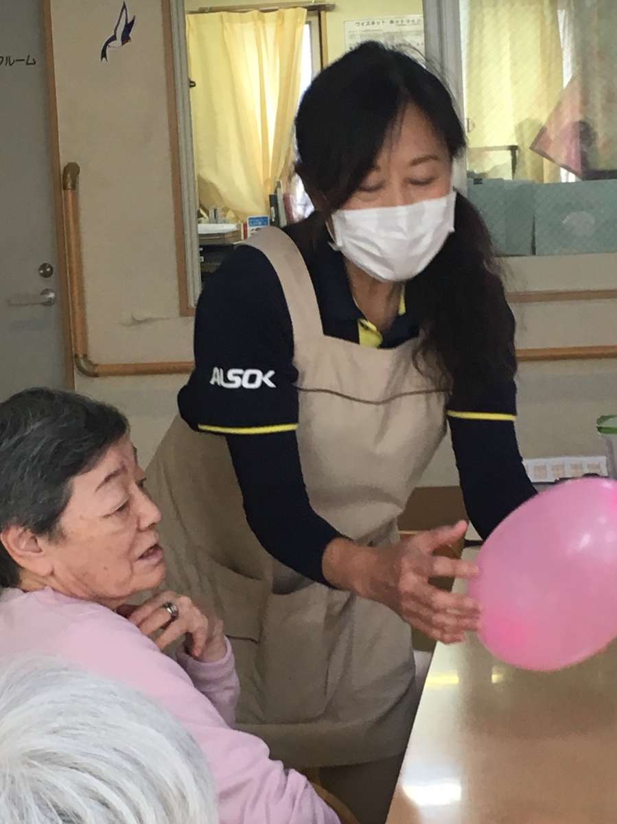 今日のレクは、午後から風船バレーをおこないました天気も良いので、体を動かしたくなりみんなではりっきちゃいました~。キャーキャーワーワー言いながら、楽しく体を動かしました。いっぱい笑って、心も体も、リフレッシュできたと思います