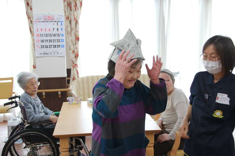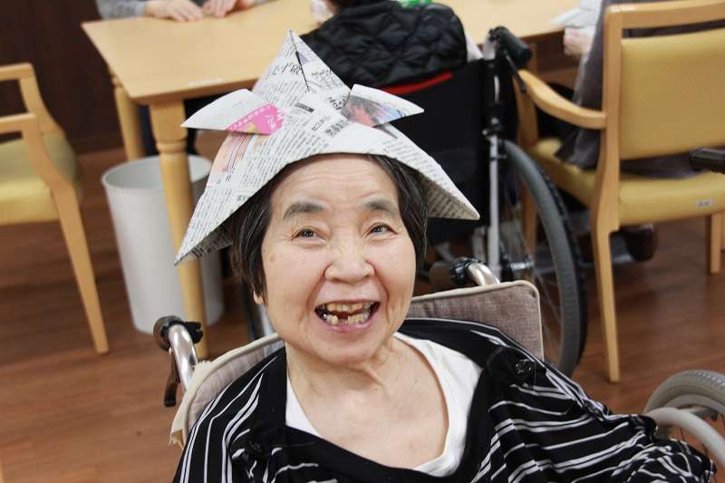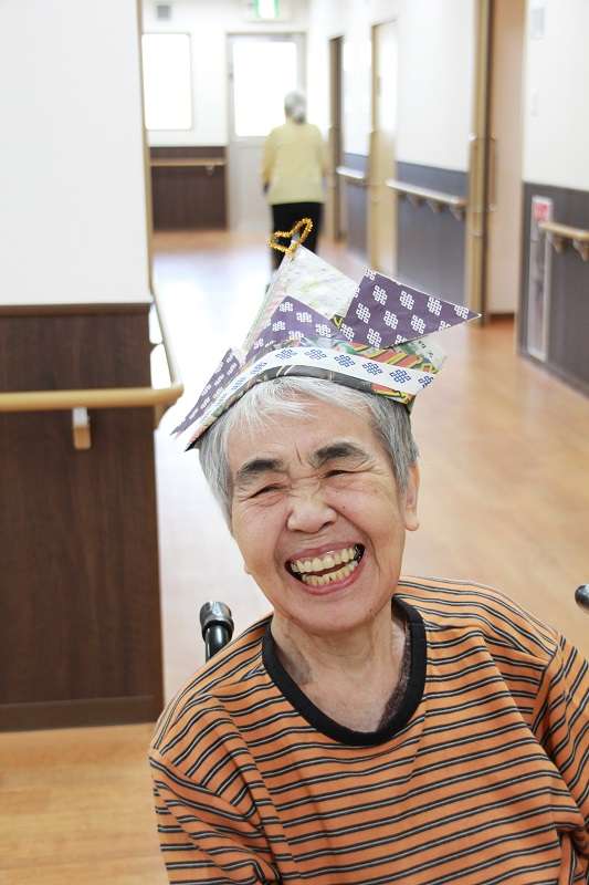 大変長らくのご無沙汰でございました。介護付有料老人ホーム みんなの家 川口東本郷の立岩でございます。緊急事態宣言が発令され、ステイ ホームされておられますでしょうか。新型コロナウイルス肺炎恐ろしいウイルスが流行ってしまい、私たちALSOK ウイズネットの各施設もそれぞれ感染予防に必死になっております。おかげさまで、新型コロナウイルスの感染報告は、未だに入ってきません、各施設ひやひやしながら毎日を送っております。さて、我が、川口東本郷の皆様お元気に過ごされております。面会がなかなかできず、ご家族の皆様には、本当にご迷惑をお掛けしております。今回はレクで作った兜をかぶり、お元気な様子を6名、の皆様の写真を掲載いたします。素敵な笑顔の写真です。他の皆様も順次掲載いたしますので楽しみにして下さい。中には写真が嫌いでなかなか撮らせていただけない方もおられますが、出来るだけ掲載させていただきます。