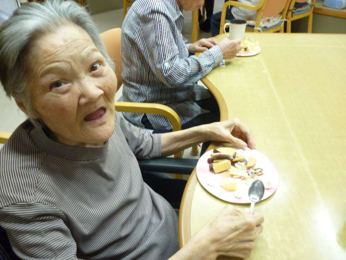 入居者様にホットケーキを沢山焼いて頂き、あんこを丸めていただいたりと職員と手分けをして作りました♪