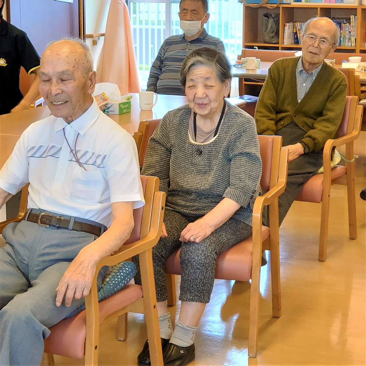脇腹のばし、ねじりのポーズ、かけつけのポーズ、げんきポーズとお馴染みのポーズを行っていきます。