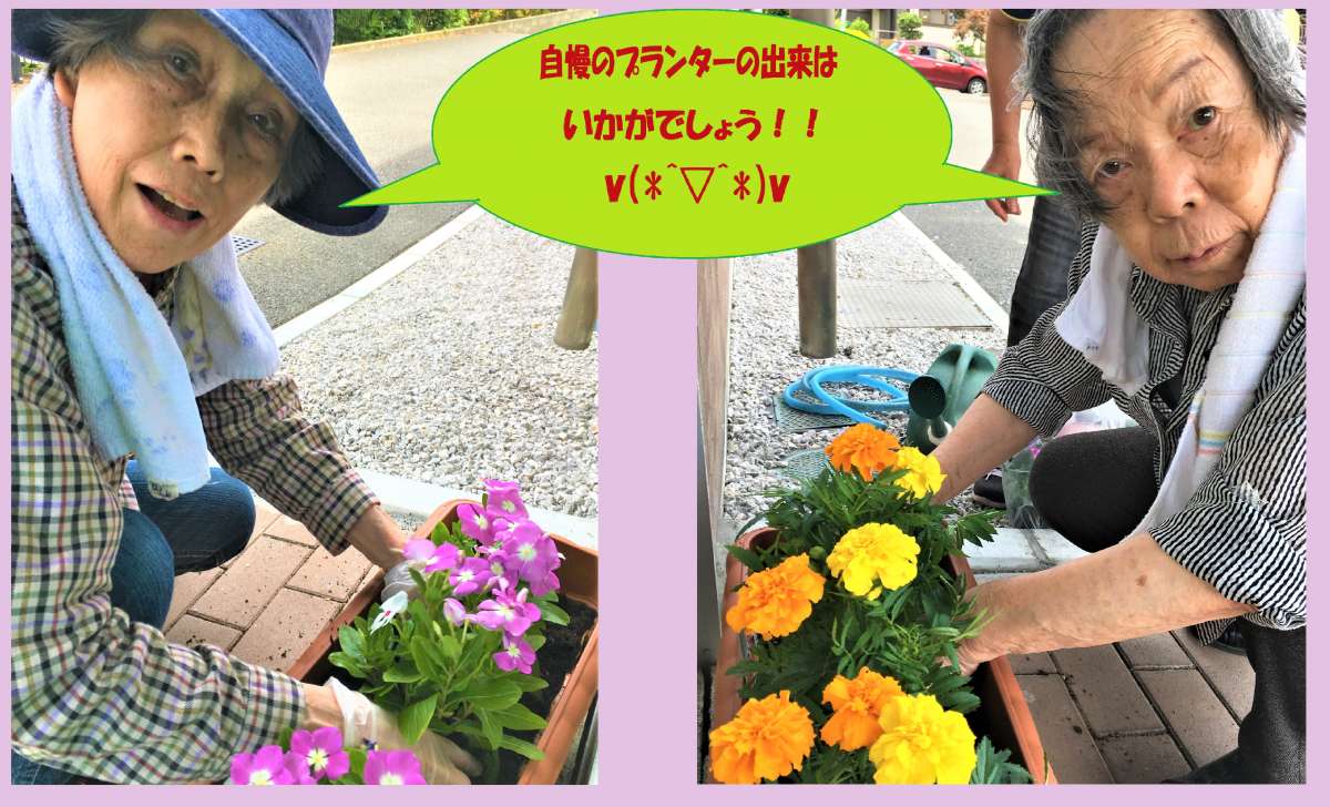 職員が近くで見守る中、お二人ともせっせとお花を植えていきます。