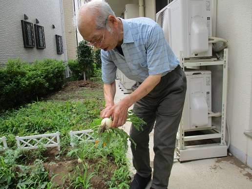 宮原駅西口よりバス6分&徒歩4分のところにある施設です。畑で出来たカブをS様収穫です!(^^)!