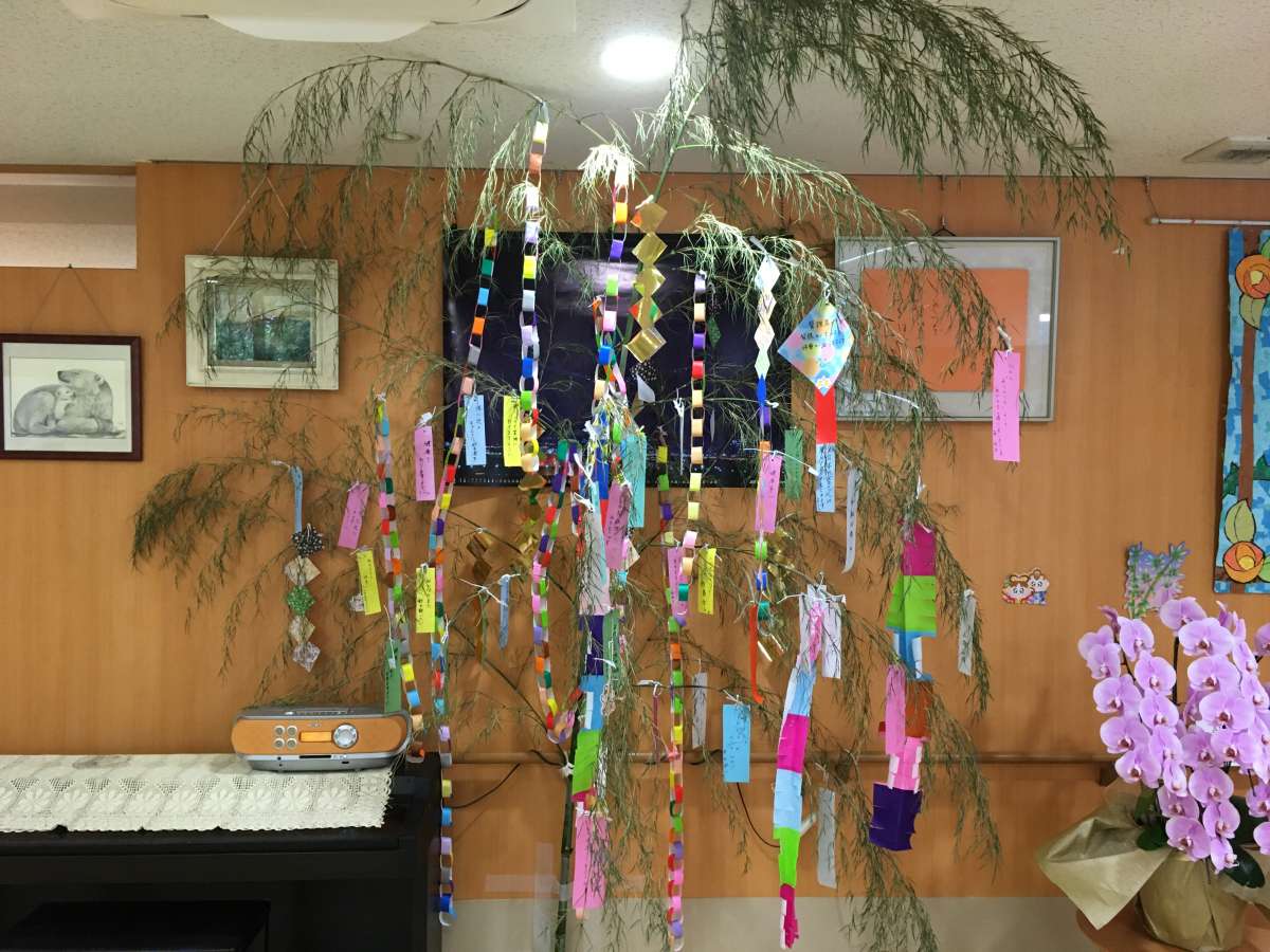 1階ロビーには七夕飾りの笹があります(`・ω・´)