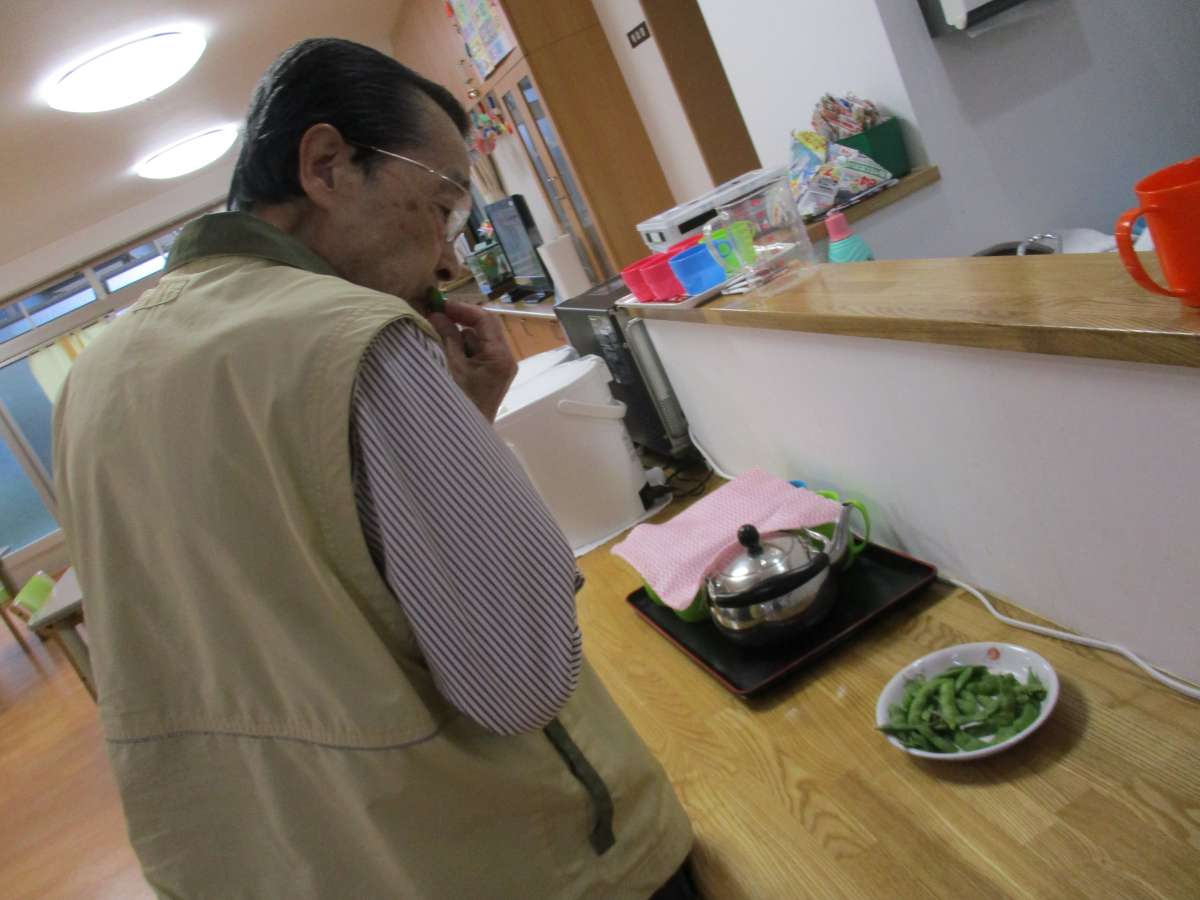 こんにちは。みんなの家・大宮内野本郷です(^。^) 花の丘公園そば。さいたま市西区。 宮原駅西口よりバス6分&徒歩4分のところにある施設です。 種から植えた枝豆を集荷しました(^o^) 洗って塩をしてレンジでチン!! 入居者様に食べていただきました♬ 「美味しい!豆の味がするよ」 「ここで取れたの?凄いね!美味しいよ(๑´ڡ`๑)」 と一つ2つとたべてくださる方がほとんどでした♬ 今はドンドン大きく育ってるスイカが楽しみですね(*´艸`*)