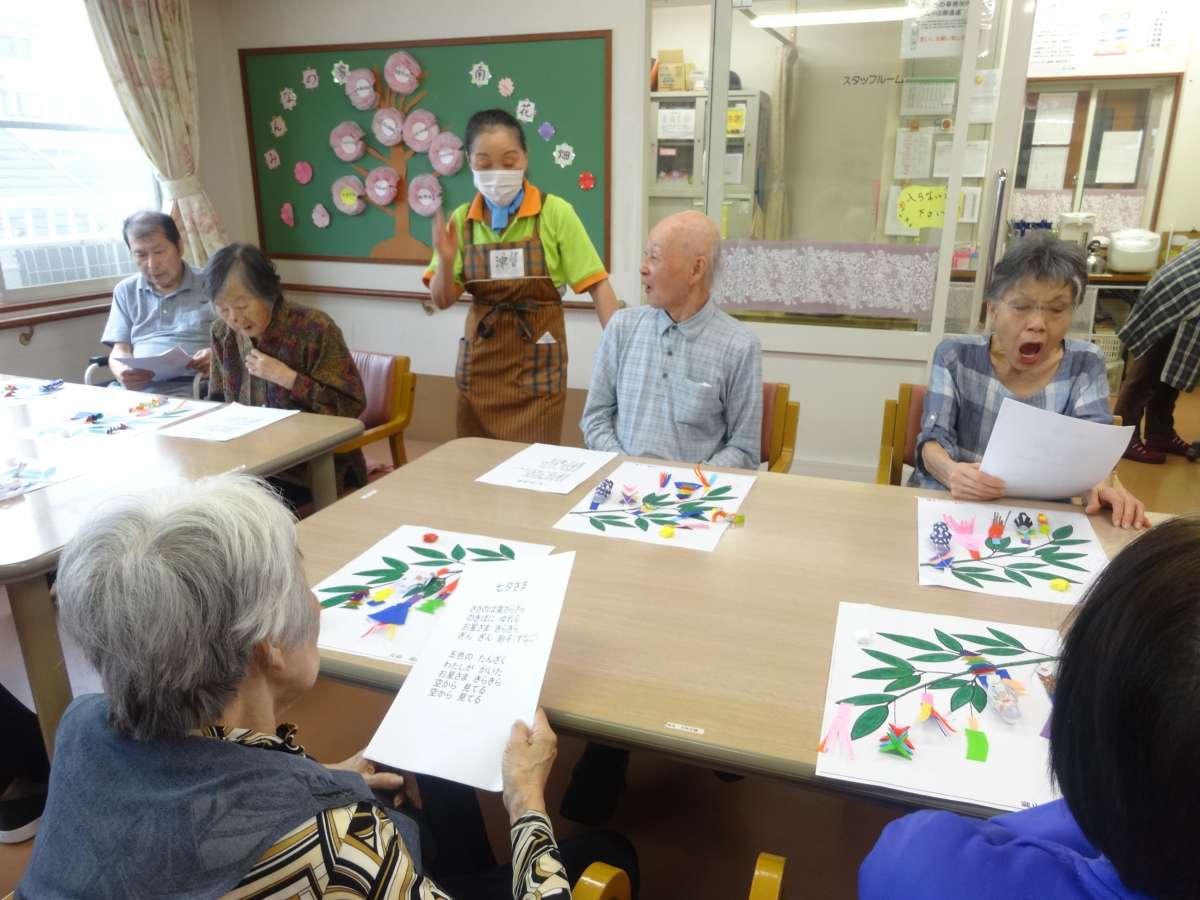 入居者様のリードで、皆様、大きい声で歌いました。