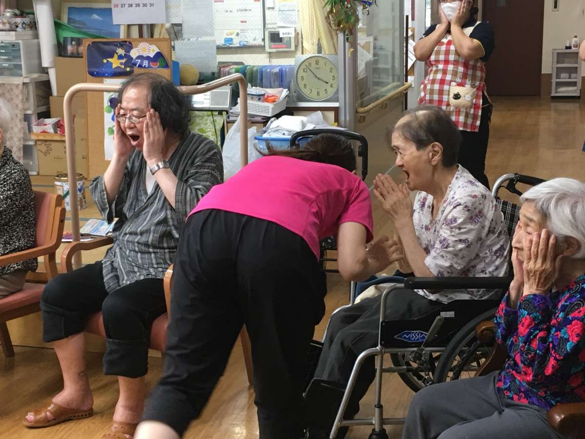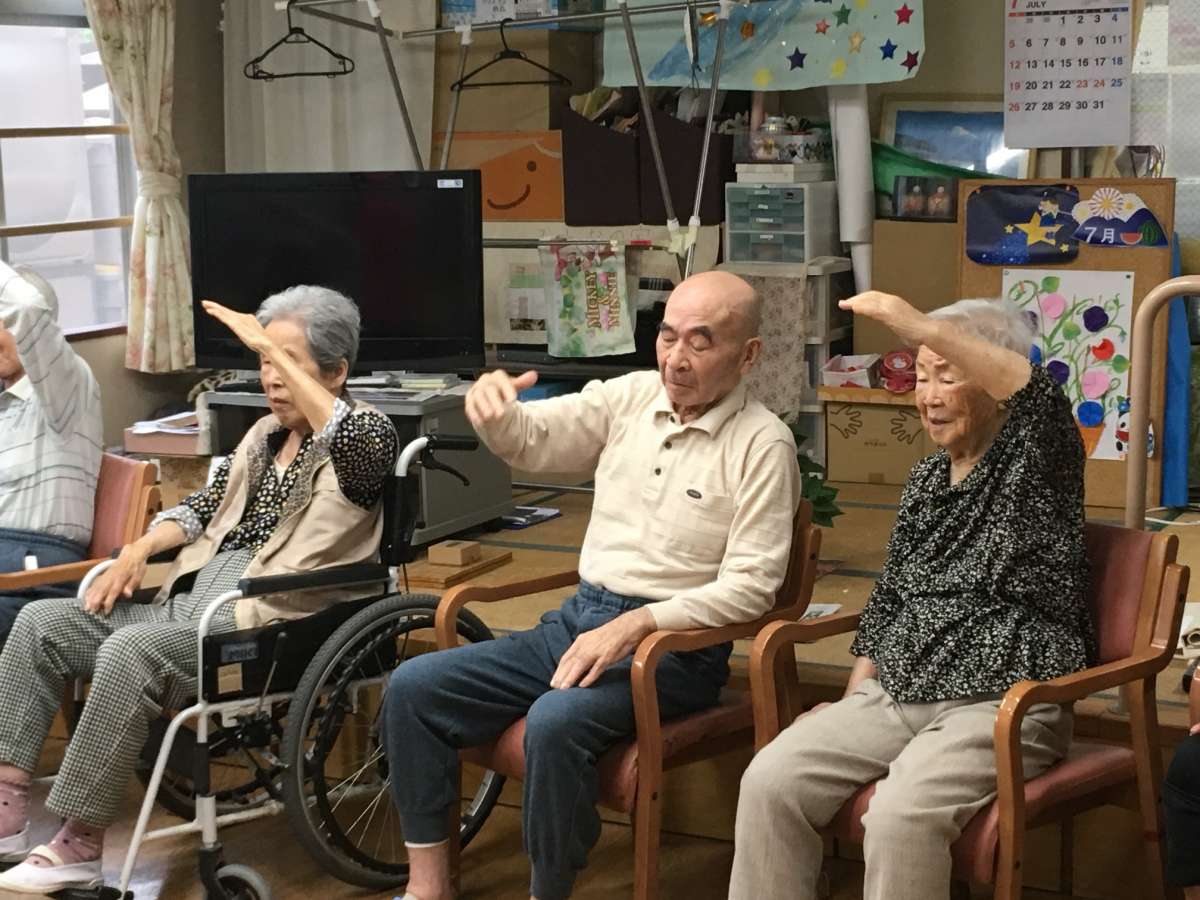 ご利用者様も介護職員も、バッチリ元気ポーズを決めました\(^o^)/