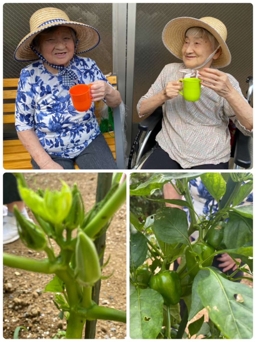 こんにちは。みんなの家・大宮内野本郷のコダマです(^。^) 花の丘公園そば。さいたま市西区。 宮原駅西口よりバス6分&徒歩4分のところにある施設です。 今日の午後は、二階の入居者様と一階の『畑』を見に行きましたよ♬ 『風通しがいいから、気持ちいいねー♬』と屋根があるデッキで♡皆さまで冷た〜い茶をゴクゴク♡ 胡瓜←今年は沢山収穫出来ました♡、オクラ、トウモロコシ、しその葉、ピーマンなど沢山の野菜が植えてあります☆ これから何を植えて行くか♡楽しみですね♬