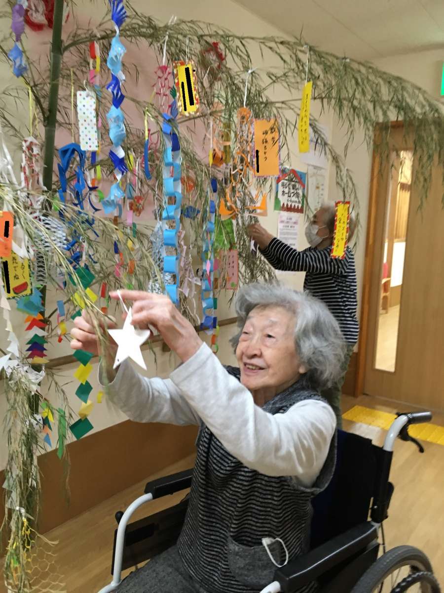 七夕当日の日に気分転換として、他フロアの短冊を見に行こう!とのことで1Fフロアの利用者様が西フロアに訪れた時のものだったと思います(‘Д’)