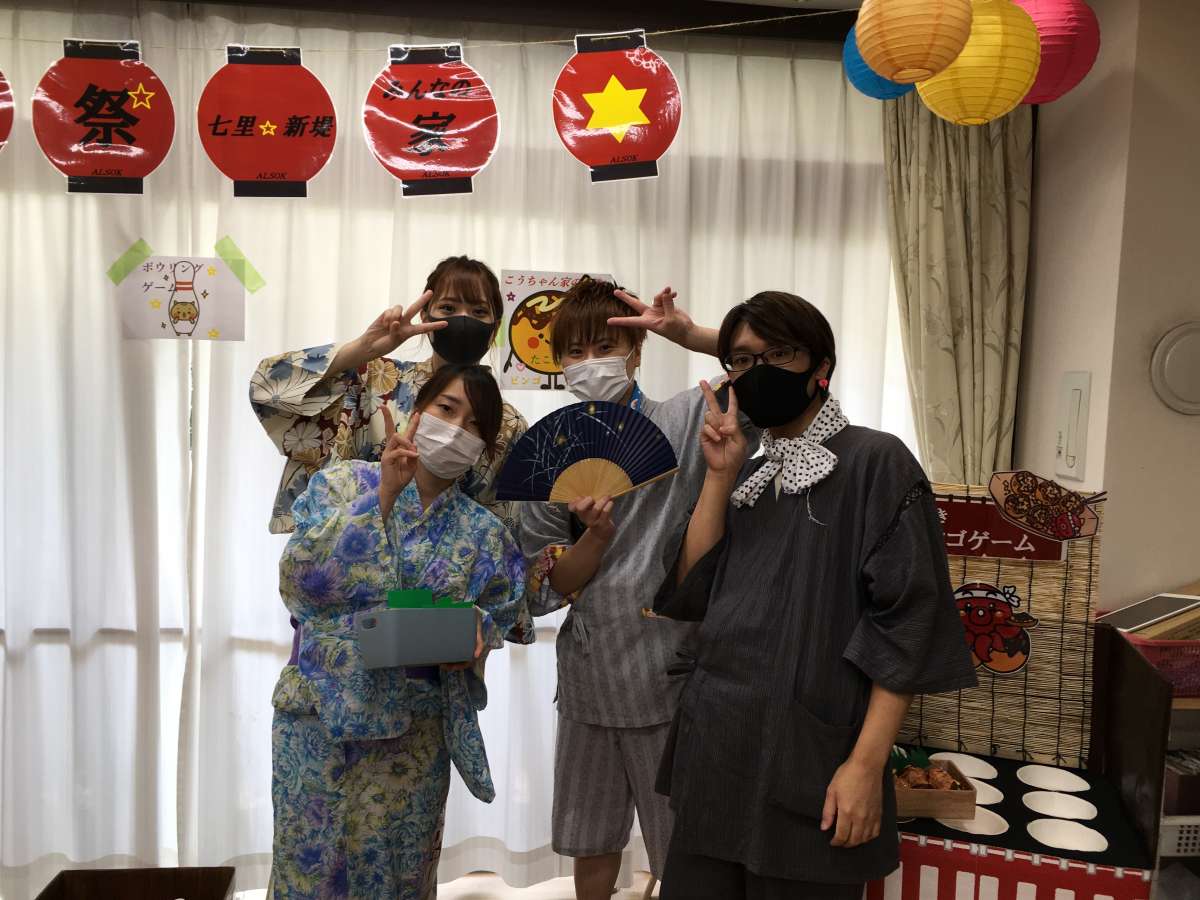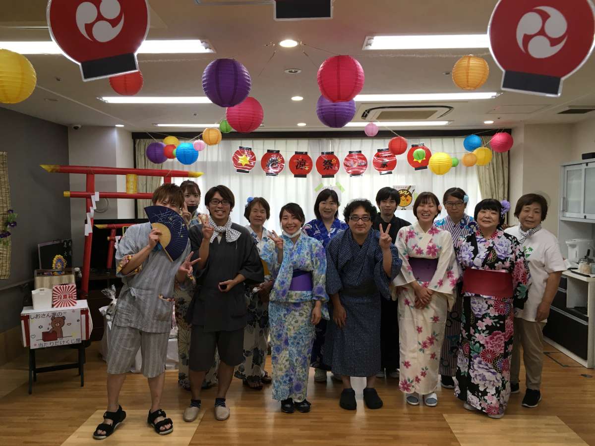 納涼祭参加のスタッフさん ほとんどの方がいつもと違う格好で