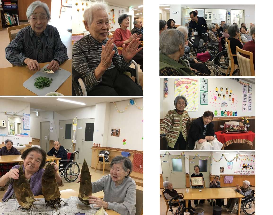 職員がなにかブログでお届けできることはないかなと題材を求めてご入居者様の間を回っていると、中には絵や折り紙といった手作業のあとで、出来上がった作品をテーブルに広げて、「写真撮っていいよ」と快く応じて下さる入居者様もいて、自分たちがブログに掲載するためばかりではなく、ご入居者様と職員の気持ちが通っている、と感じられて、その共同作業を嬉しく思っています。