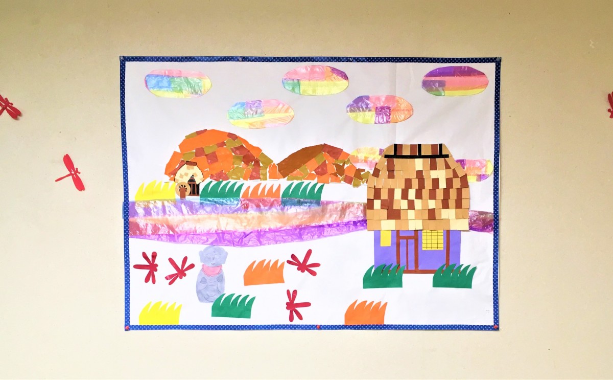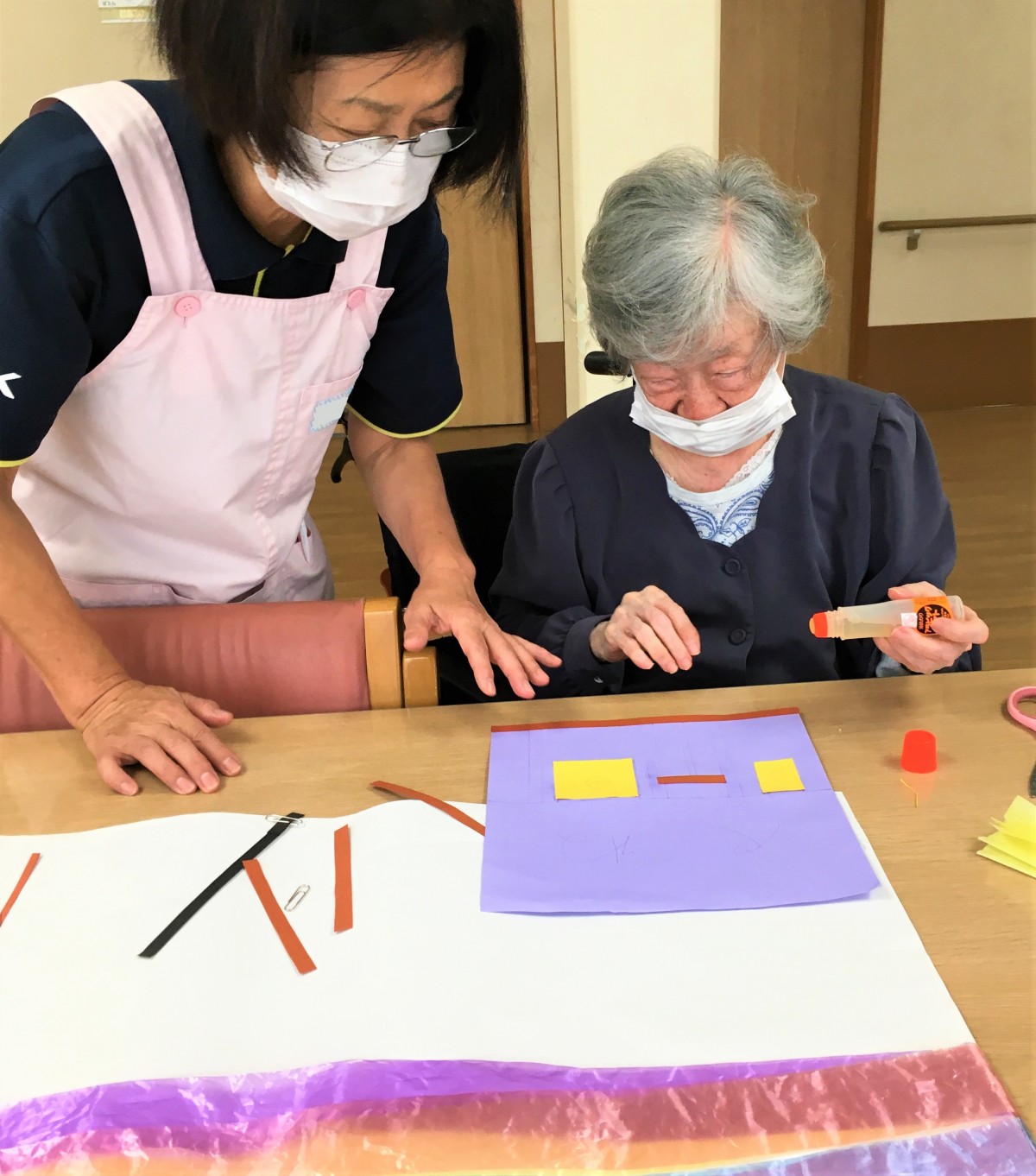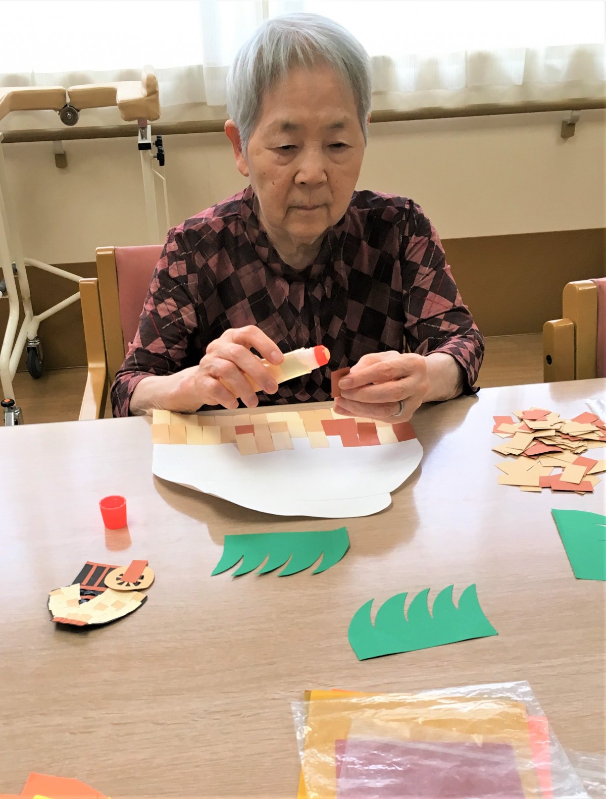 今回は、色画用紙を切り貼りする貼り絵形式で壁飾りを作られるようです。