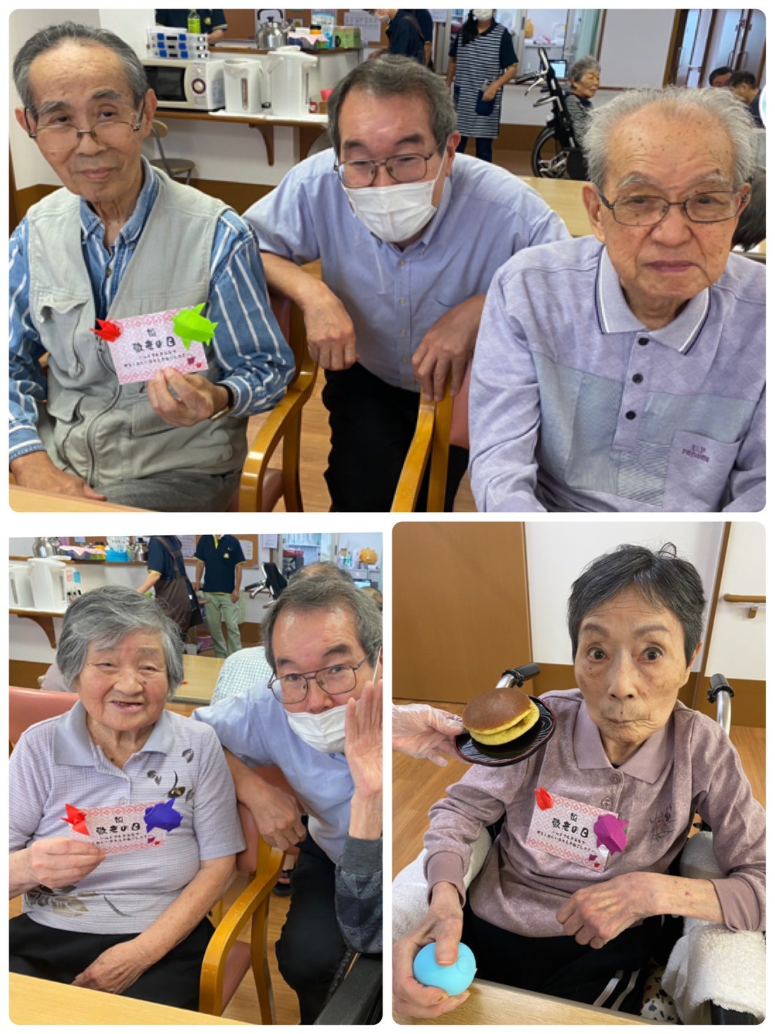 こんにちは。みんなの家・大宮内野本郷のコダマです(^。^) 花の丘公園そば。さいたま市西区。 宮原駅西口よりバス6分&徒歩4分のところにある施設です。 リニューアルに伴い、ブログupが遅れてしまい申し訳ありませんでした。今月からまた入居者方の沢山の笑顔を発信していきたいと思います。 先月みんなの家・大宮内野本郷では、『敬老の日イベント』を開かせていただきました♡ 『多年にわたり社会に尽くされてきたお年寄りを敬愛し、長寿を祝う日』ですね。 今年はコロナ禍で一階と二階の入居者様別々での開催になってしまいましたが・・・ スタッフからの心のこもったお祝いのカードと、美声が自慢の♬ナースからの『ハナミズキ』の歌のプレゼントや♡♡♡どら焼きでお祝いさせて頂きました♡加藤ケアマネとも記念撮影♬沢山の笑顔が見られました♡ 皆様、おめでとうございま〜す(祝)♬ これからもお元気で♡みんなの家・大宮内野本郷で楽しい思い出を沢山作っていきましょうね(๑˃̵ᴗ˂̵)