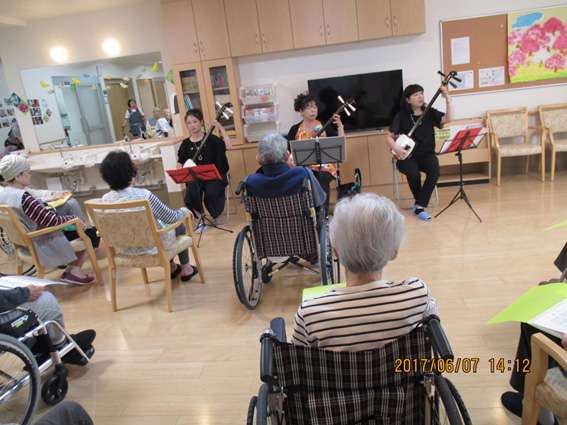 平成29年6月7日(水)みんなの家・三橋4丁目に津軽三味線ボランティアの方がおみえになり、津軽三味線を披露していただきました。ライブの三味線をはじめて聞き、ご入居の皆様も感動し素敵な時間を過ごしました。次回は皆様も三橋4丁目に聞きにきてください。