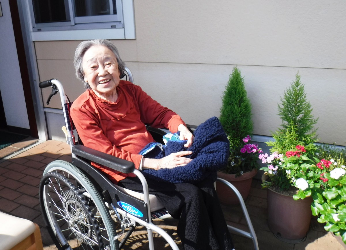「少し肌寒いけど気持ちがいい~」「お日様に当たると骨が丈夫になるのよ!」