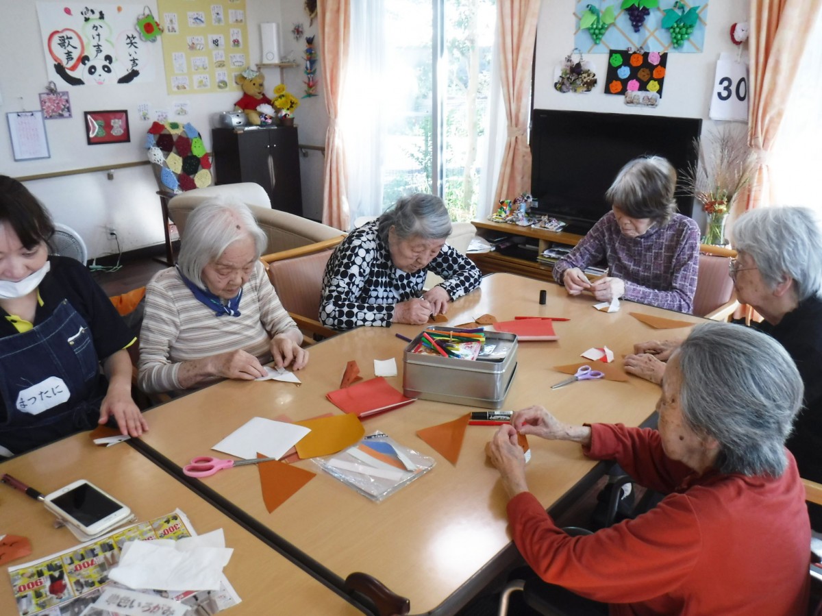 少しの時間を見つけては、折り紙で季節飾りを作られます。