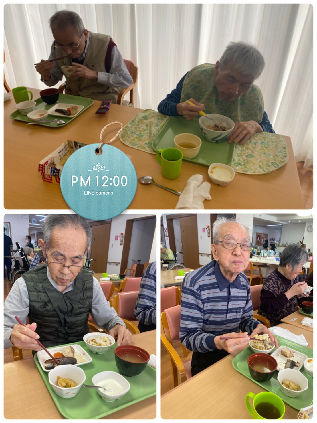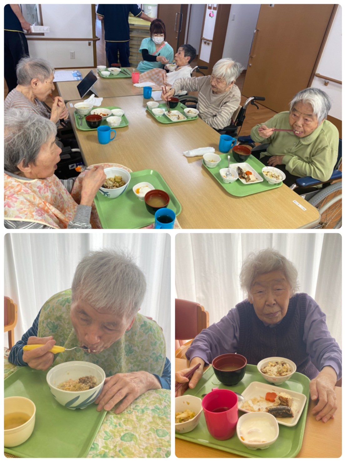 今日もしっかりと『集団体操・口腔体操・早口言葉・音楽体操』でお身体を動かされました(๑˃̵ᴗ˂̵) そしてお楽しみのlunchは、今日は特別メニュー♬ 『もぶり飯って何〜?』な皆様からのご質問に、早速ネットで調べてみました。 愛媛でお祝いの際や来客時など、人が集まる時に食する『バラ寿司』のことだそうです。 枝豆・こんにゃく・ごぼう・鶏肉・油揚げ・錦糸卵などが入っていて『美味しい!』と大好評でした♬ ほとんどの方が完食されていましたよ♡