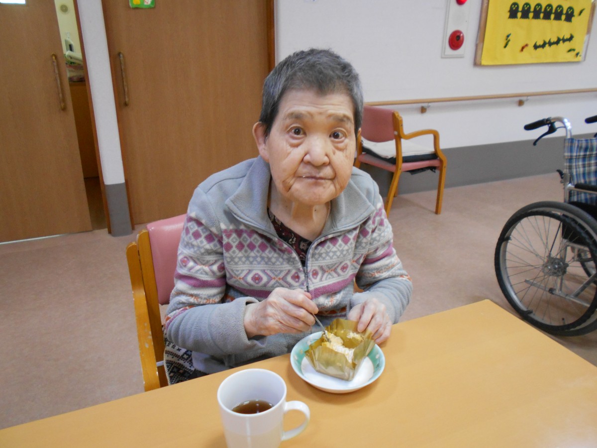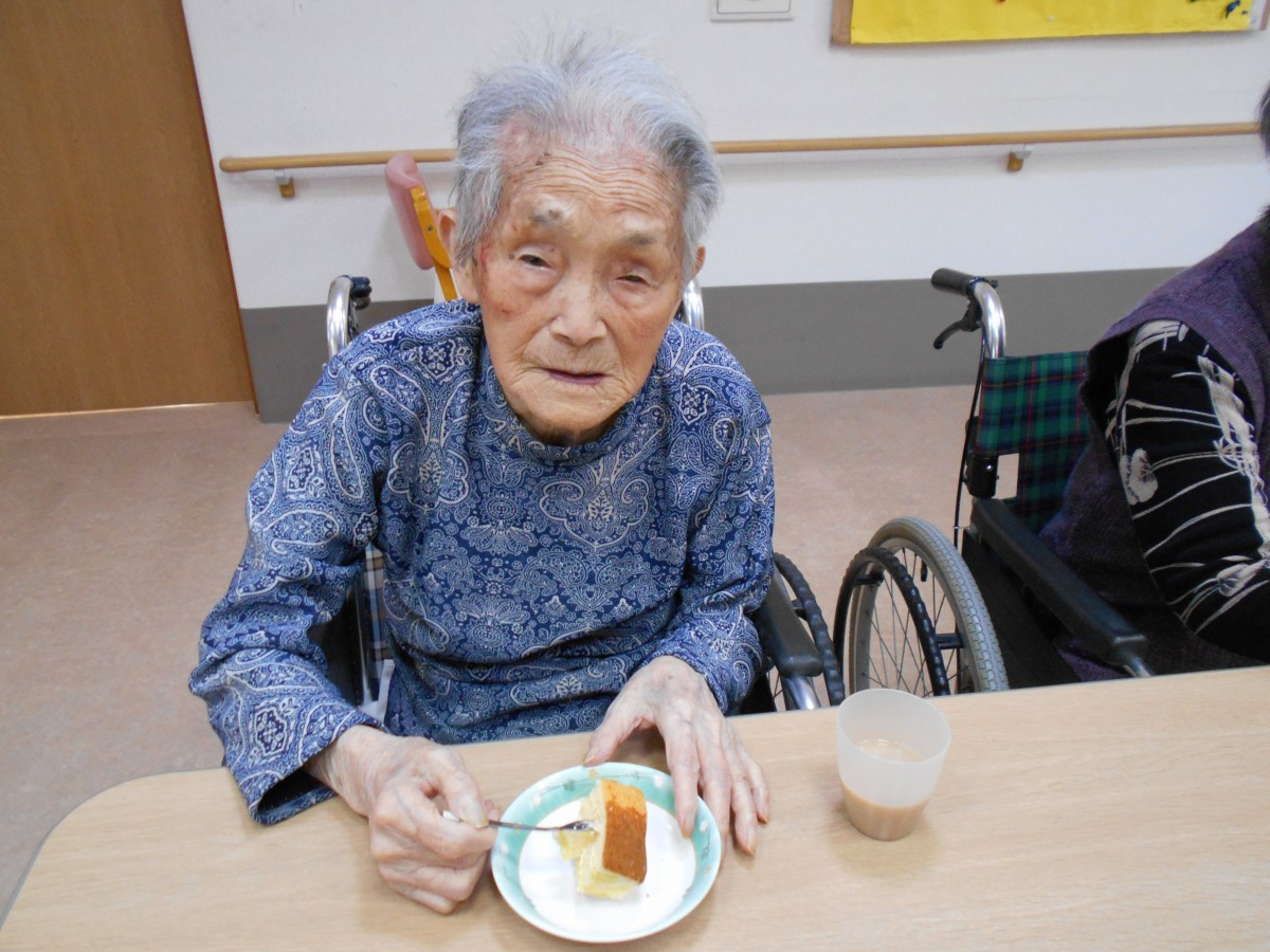 職員がプレゼントをお渡しし、その後に皆様でおやつを召し上がられました。