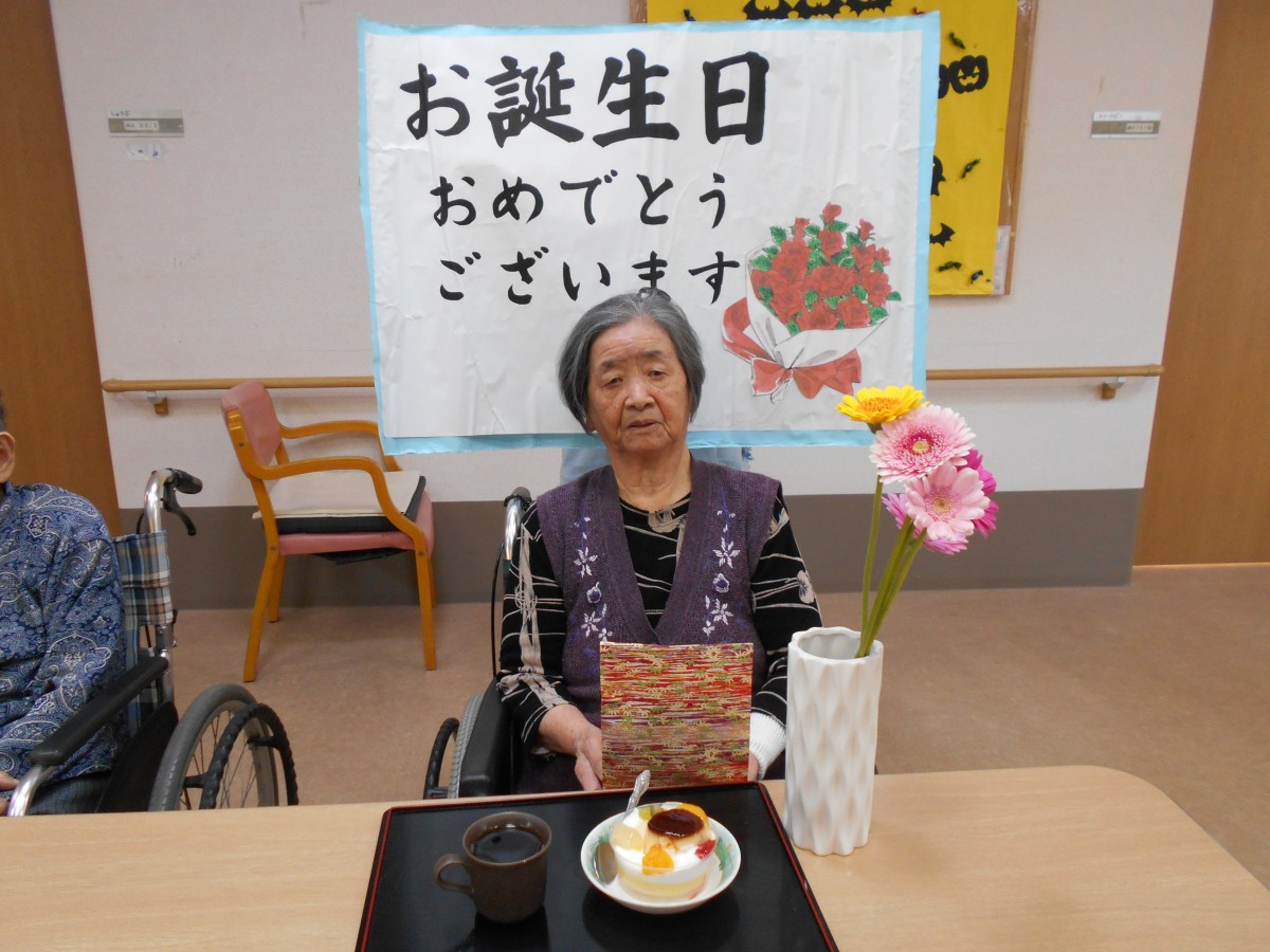 先日、ホームで10月がお誕生日の入居者様の誕生日会を行いました。