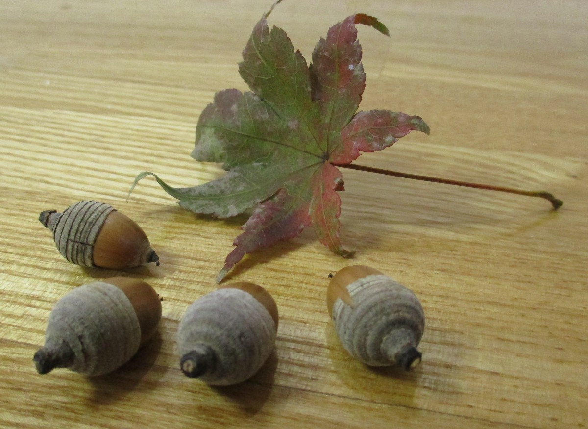 こちらは道中で拾ったドングリと葉っぱ。