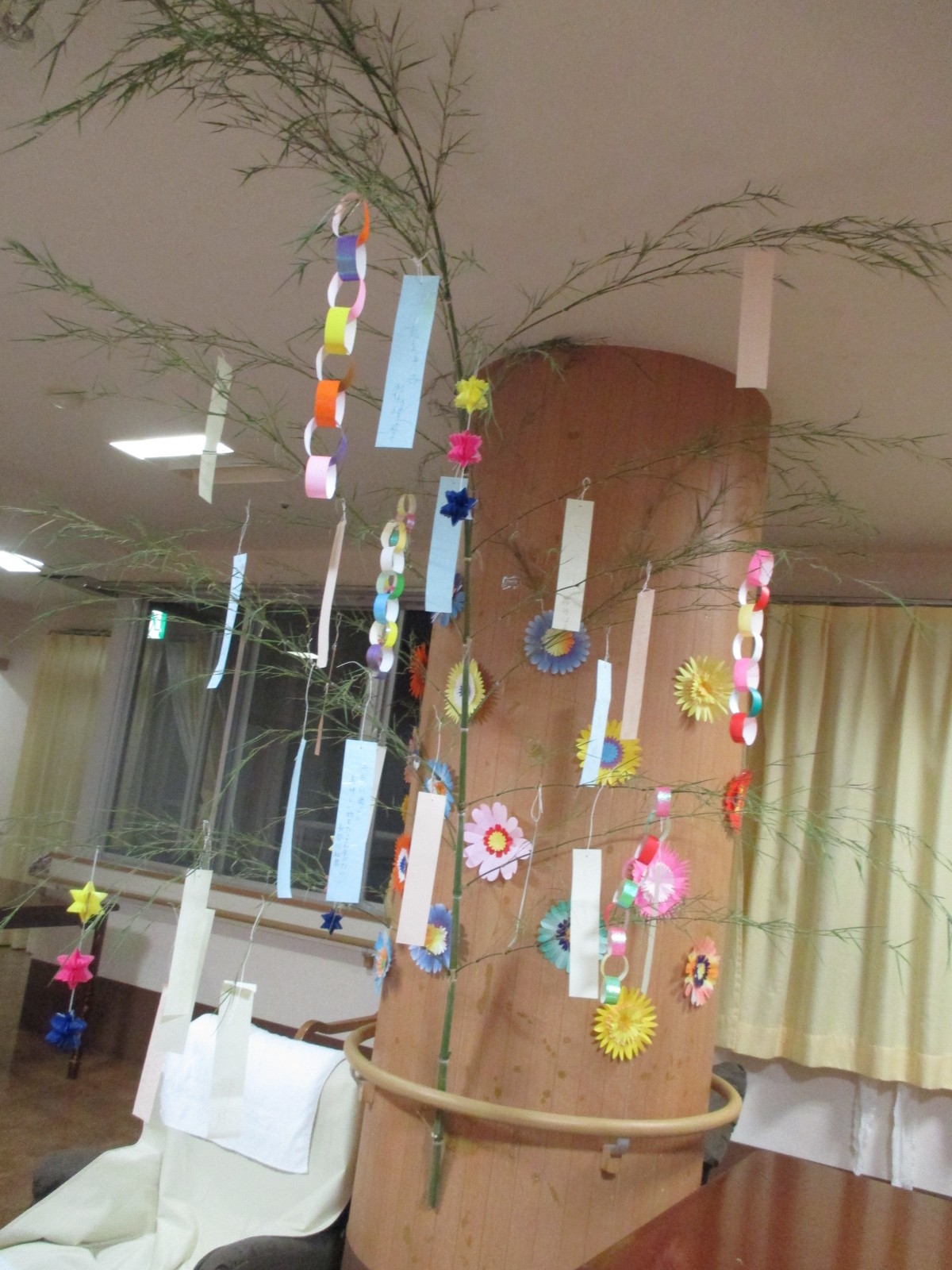 全員で飾り付けをして短冊には願い事を…