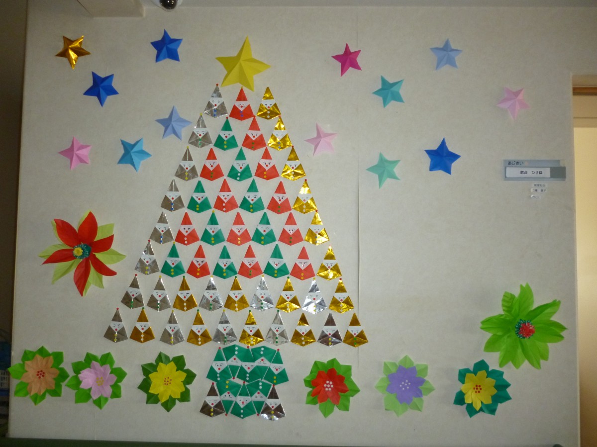 12月はクリスマスをイメージして入居者様にもお手伝いしてもらい、作りあげました(^o^)丿