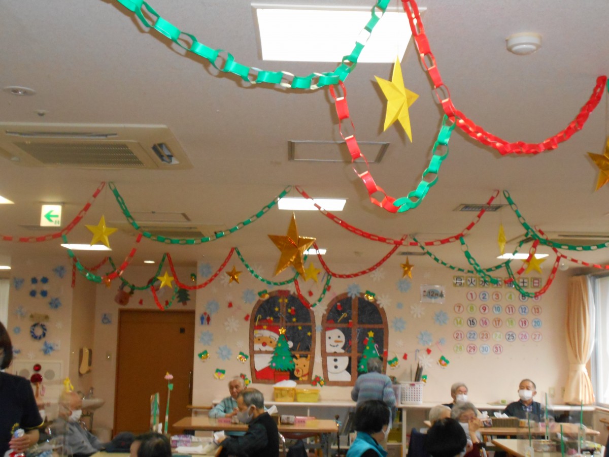 さらにみなさまの頭上には緑と赤の輪飾りや立体に折られた星が輝いています☆☆