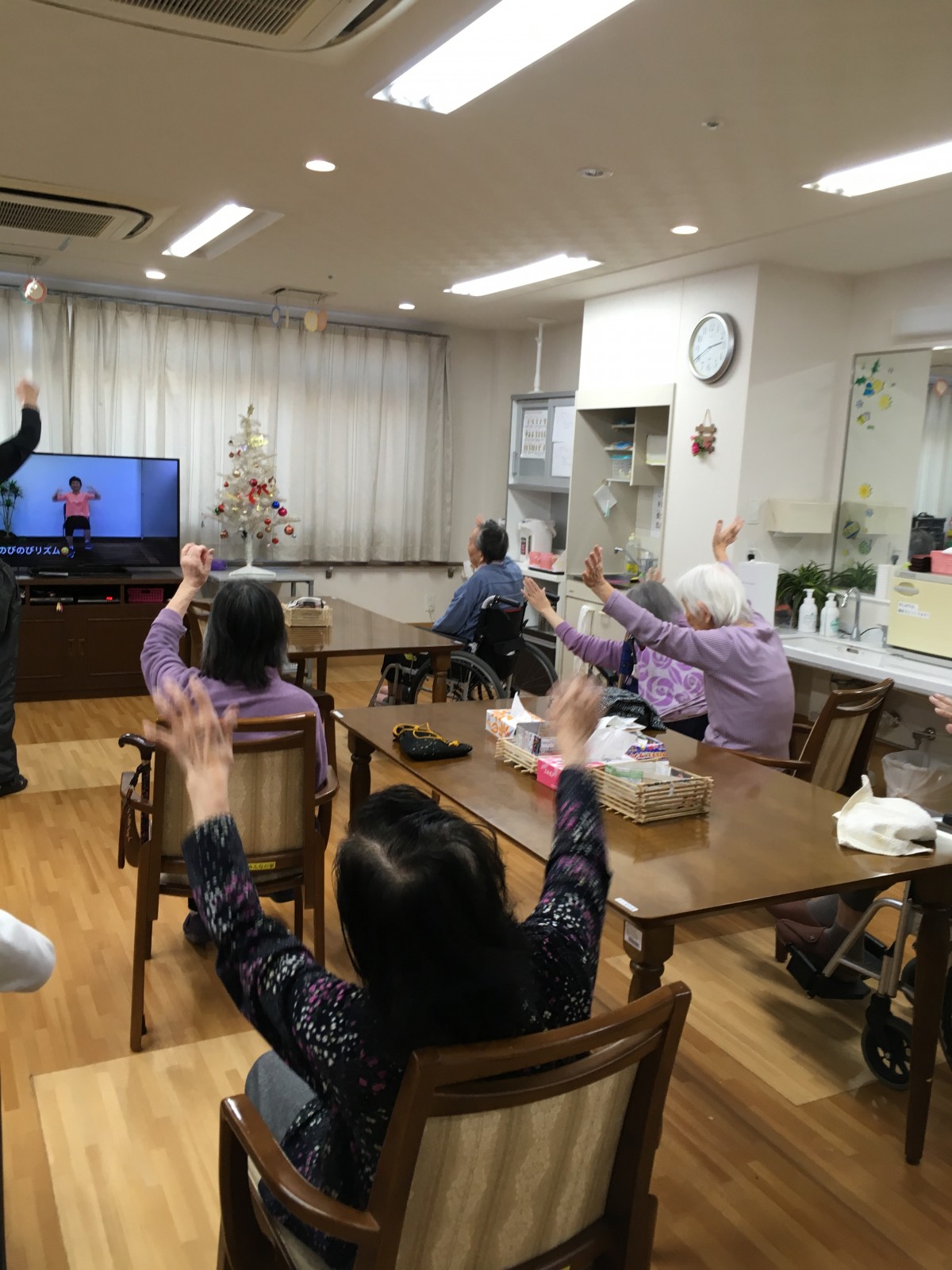 ご入居者様と一緒に身体を動かしました(⌒∇⌒)
