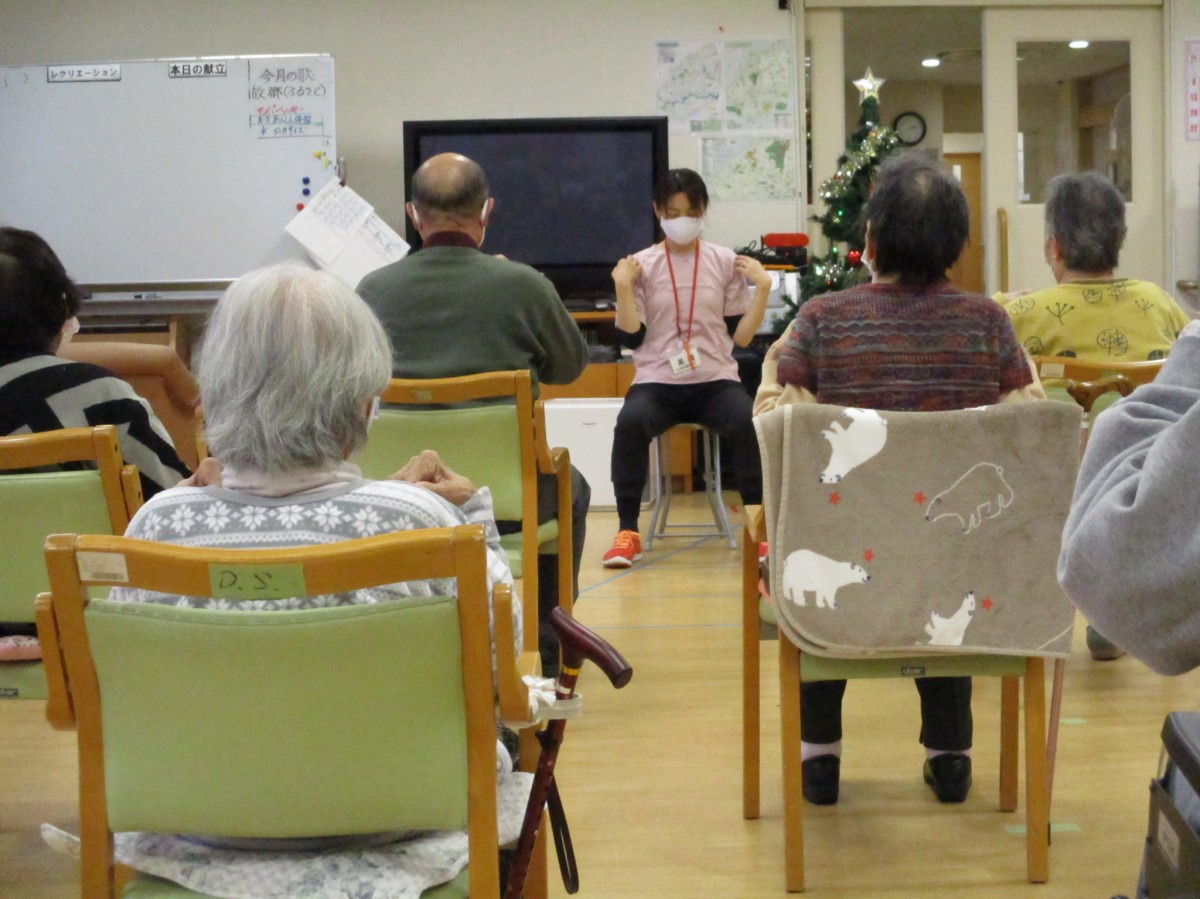 職員も前に出てインストラクターと一緒にNOA体操!